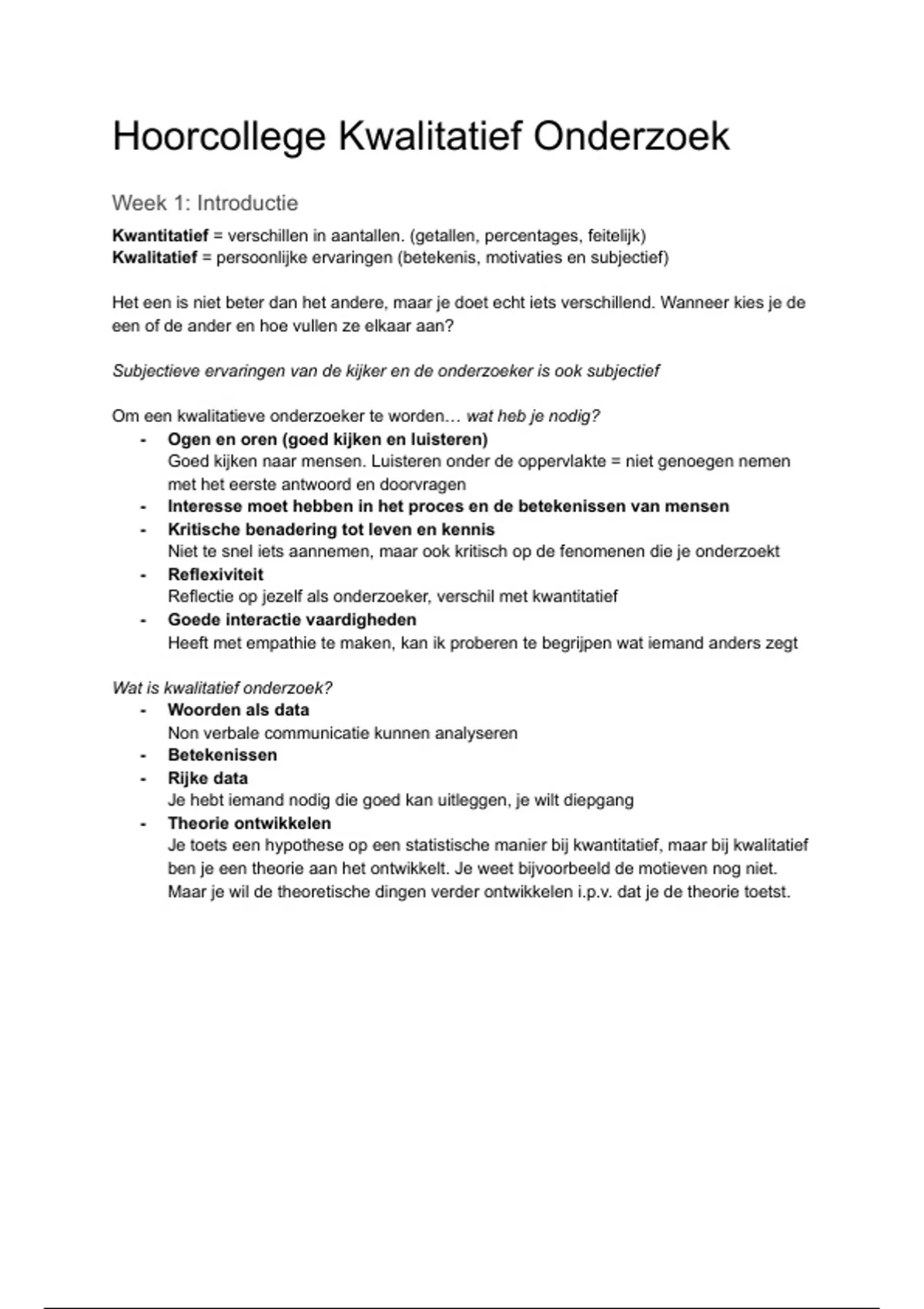 College aantekeningen Kwalitatief Onderzoek (AYv)