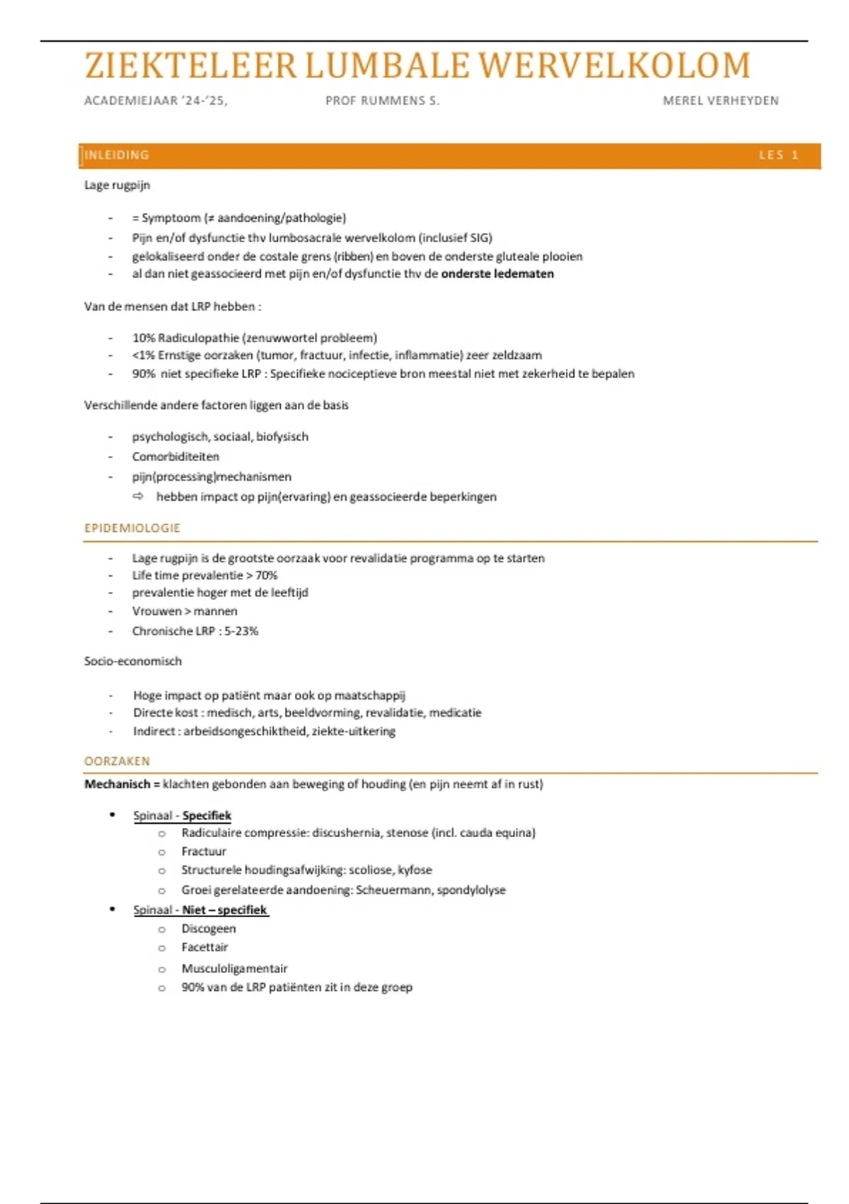 volledige samenvatting MSK wervelkolom