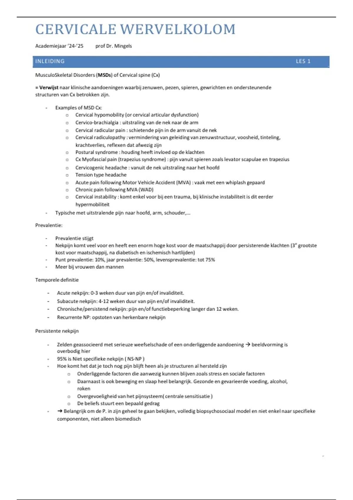 o Cervical instability : komt enkel voor bij een trauma, bij klinische instabiliteit is dit eerder