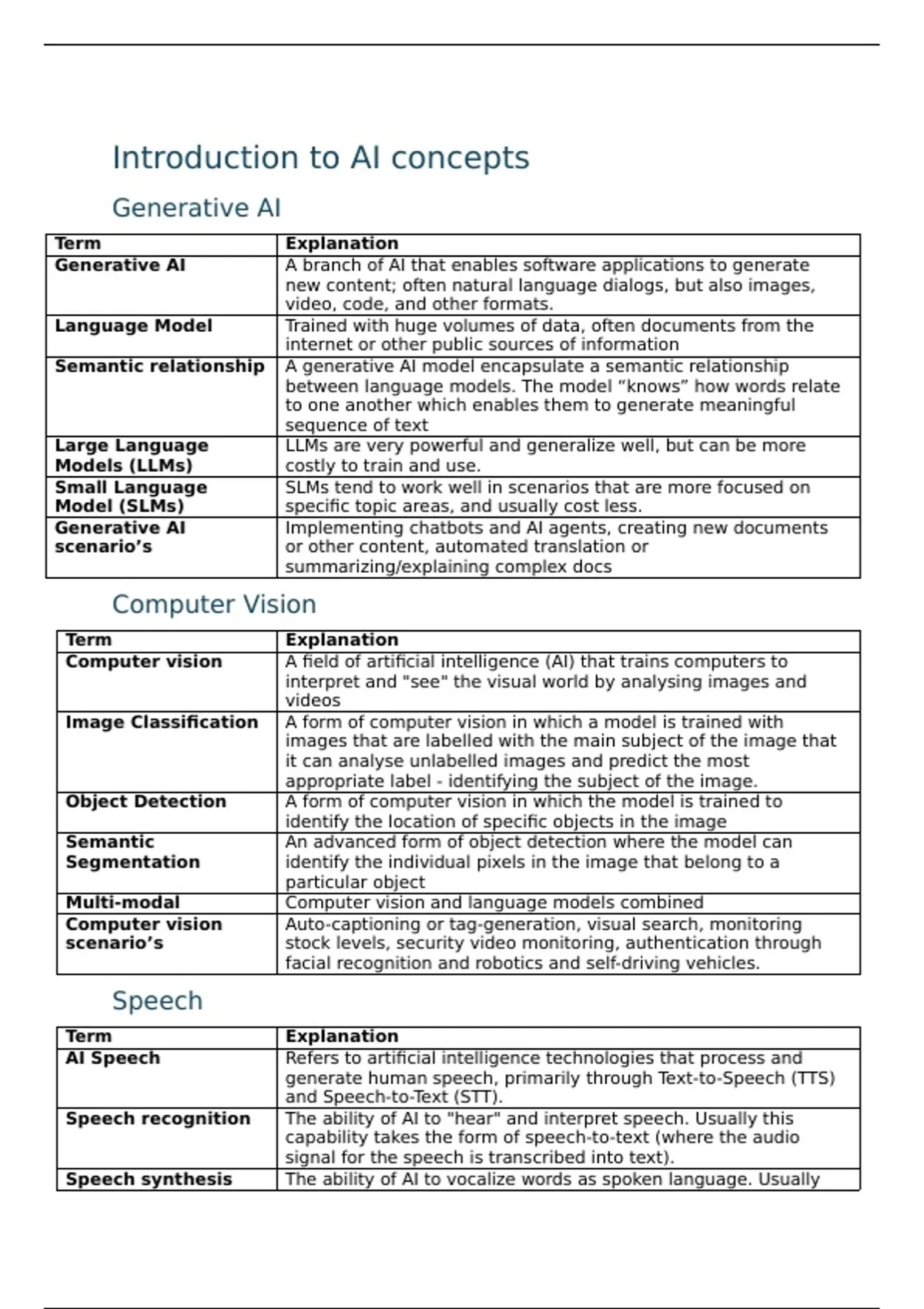 Speech recognition The ability of AI to "hear" and interpret speech. Usually this