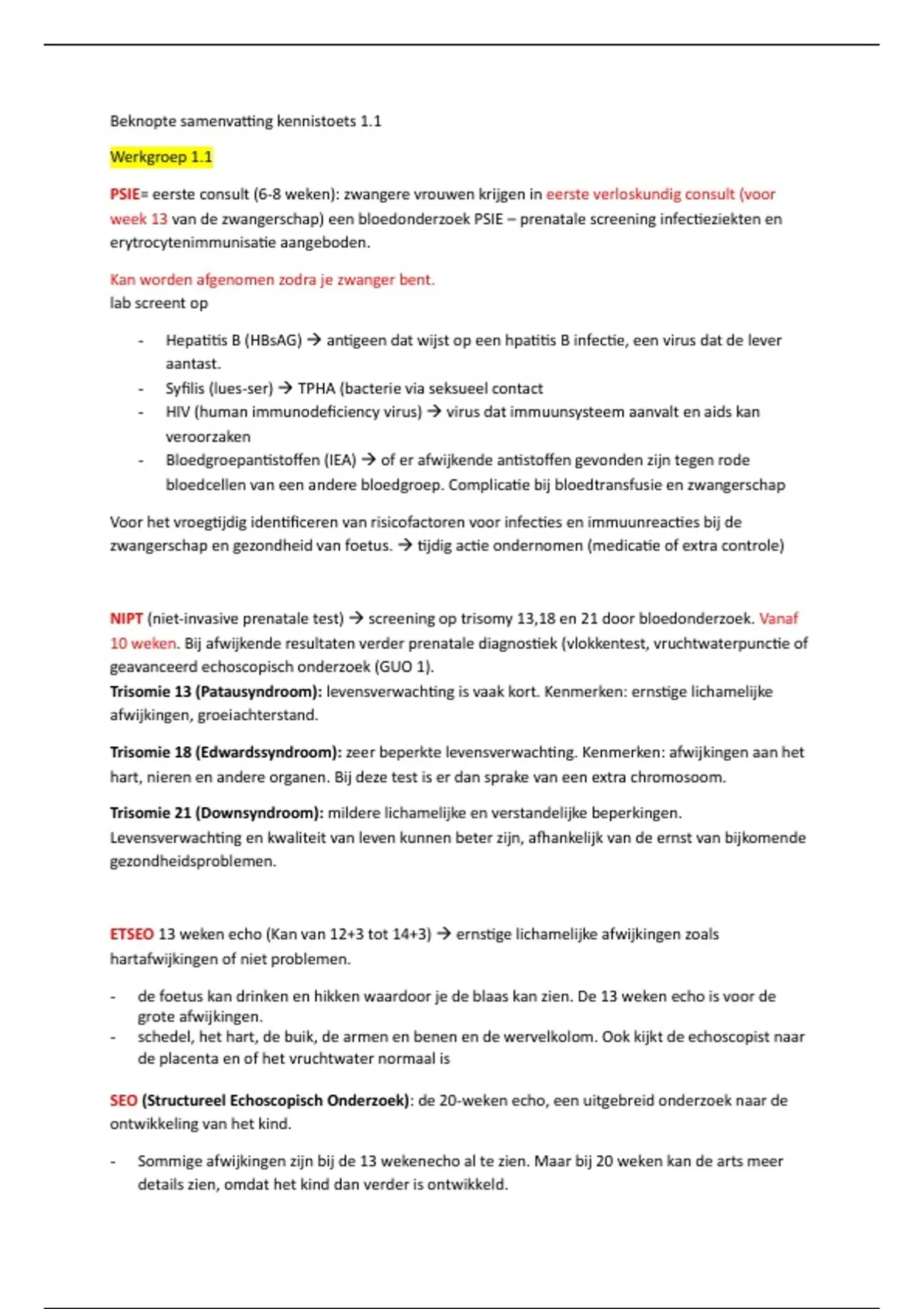 NIPT (niet-invasive prenatale test) → screening op trisomy 13,18 en 21 door bloedonderzoek. Vanaf