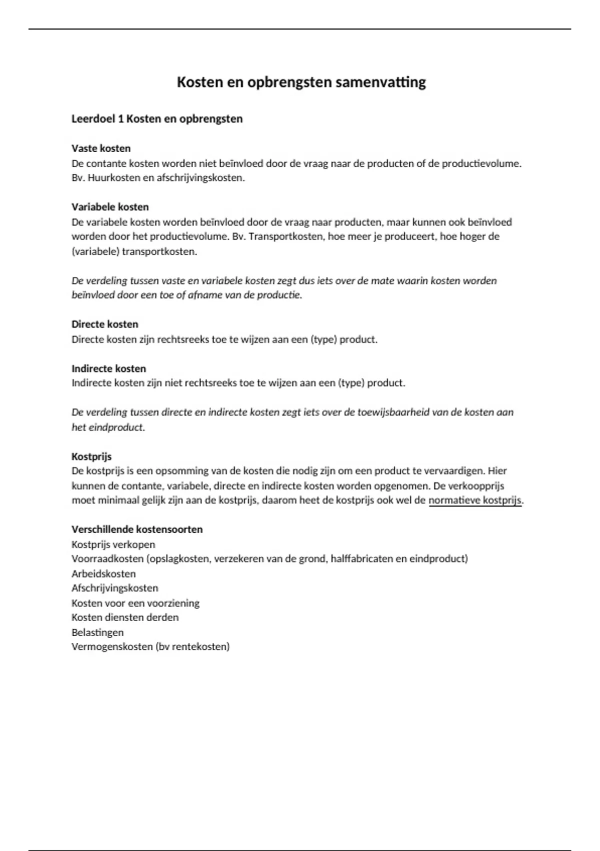 worden door het productievolume. Bv. Transportkosten, hoe meer je produceert, hoe hoger de