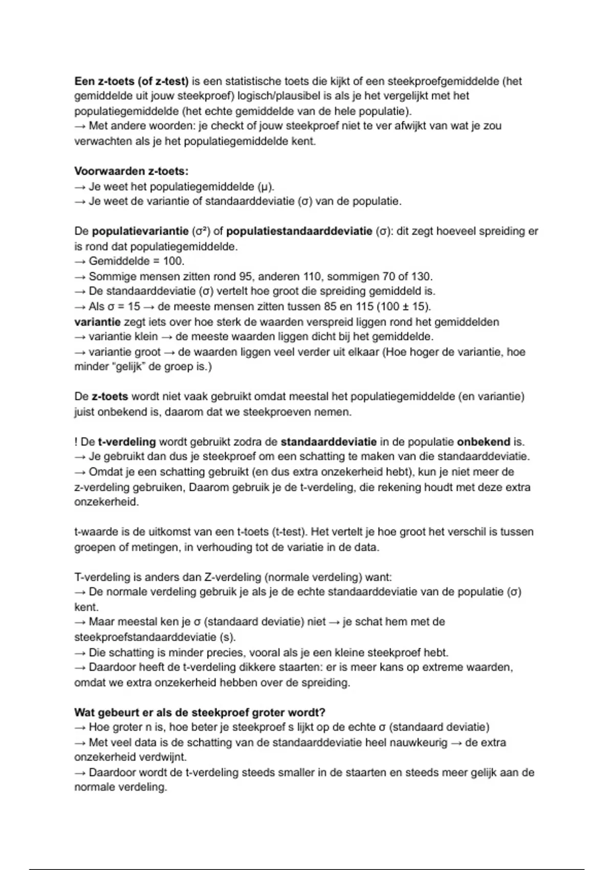 → De normale verdeling gebruik je als je de echte standaarddeviatie van de populatie (σ)