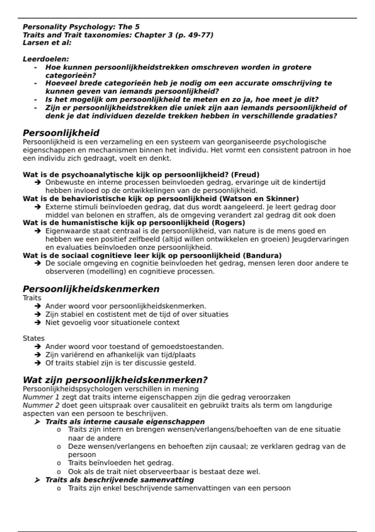 Nummer 1 zegt dat traits interne eigenschappen zijn die gedrag veroorzaken