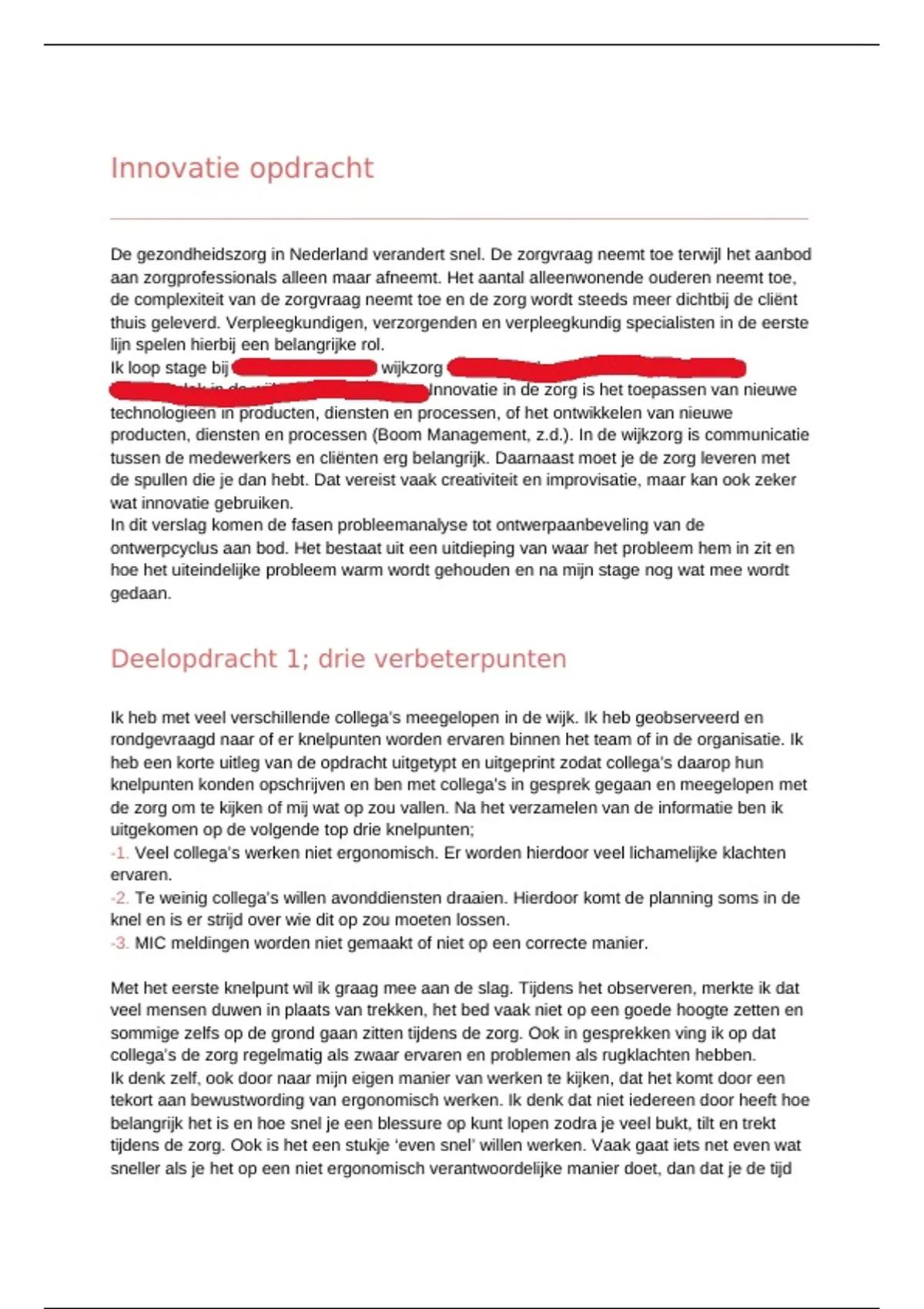 Innovatieverslag verpleegkunde PL3. Behaald cijfer: 7,6