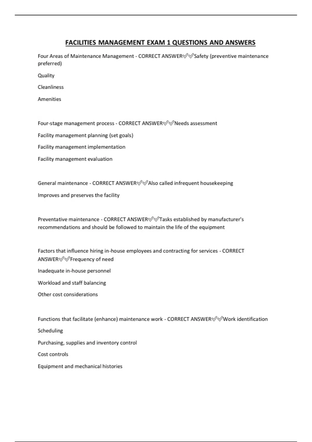 Four Areas of Maintenance Management - CORRECT ANSWER✅✅Safety (preventive maintenance