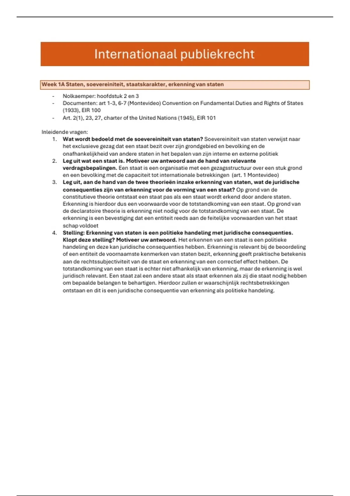 1. Wat wordt bedoeld met de soevereiniteit van staten? Soevereiniteit van staten verwijst naar