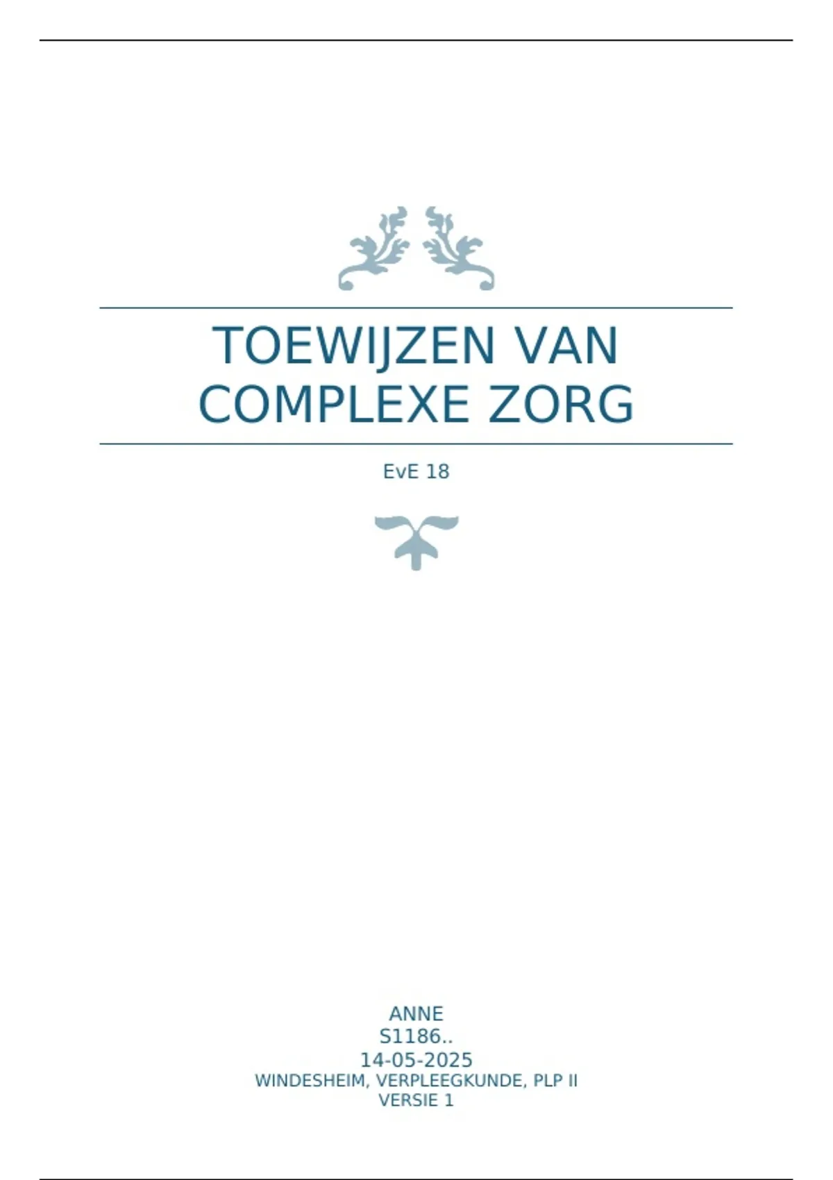 Uitwerking van EvE 18. Hiervoor heb ik een 7 gekregen. Hiervoor een casus uit het ziekenhuis gebruikt. Verslag voldoet aan de eisen uit de Rubric.