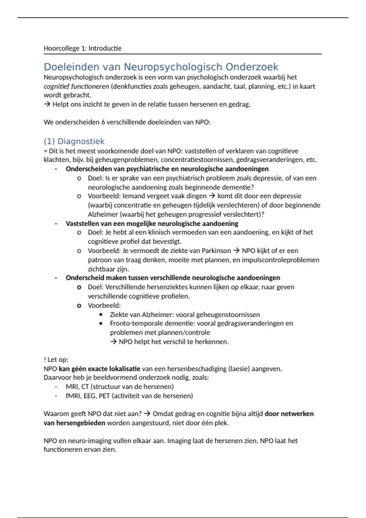 NPO en neuro-imaging vullen elkaar aan. Imaging laat de hersenen zien, NPO laat het