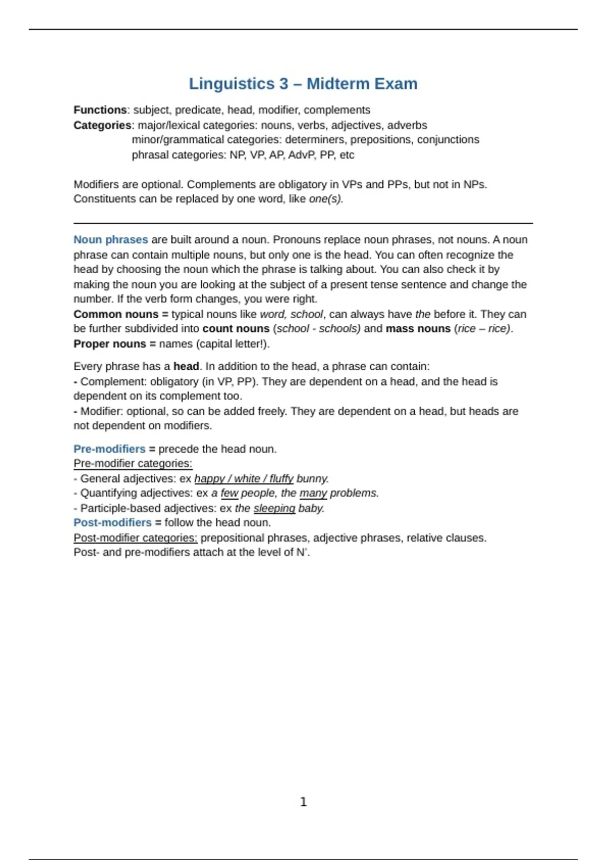 morphological structures (ex: tables, coming). 3. A syntactic category (noun, verb, etc). 4. A