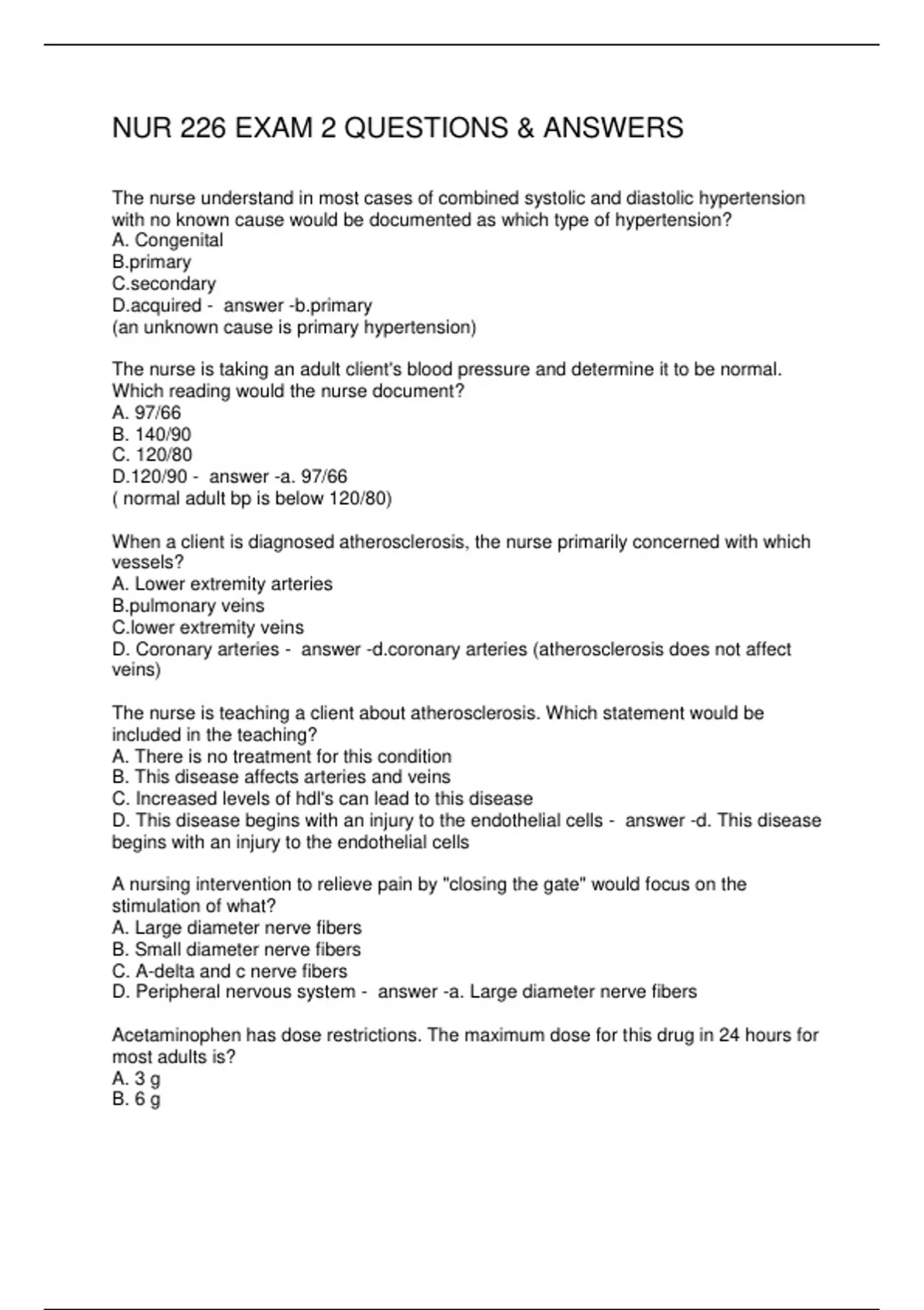 NUR 226 EXAM 2 QUESTIONS & ANSWERS