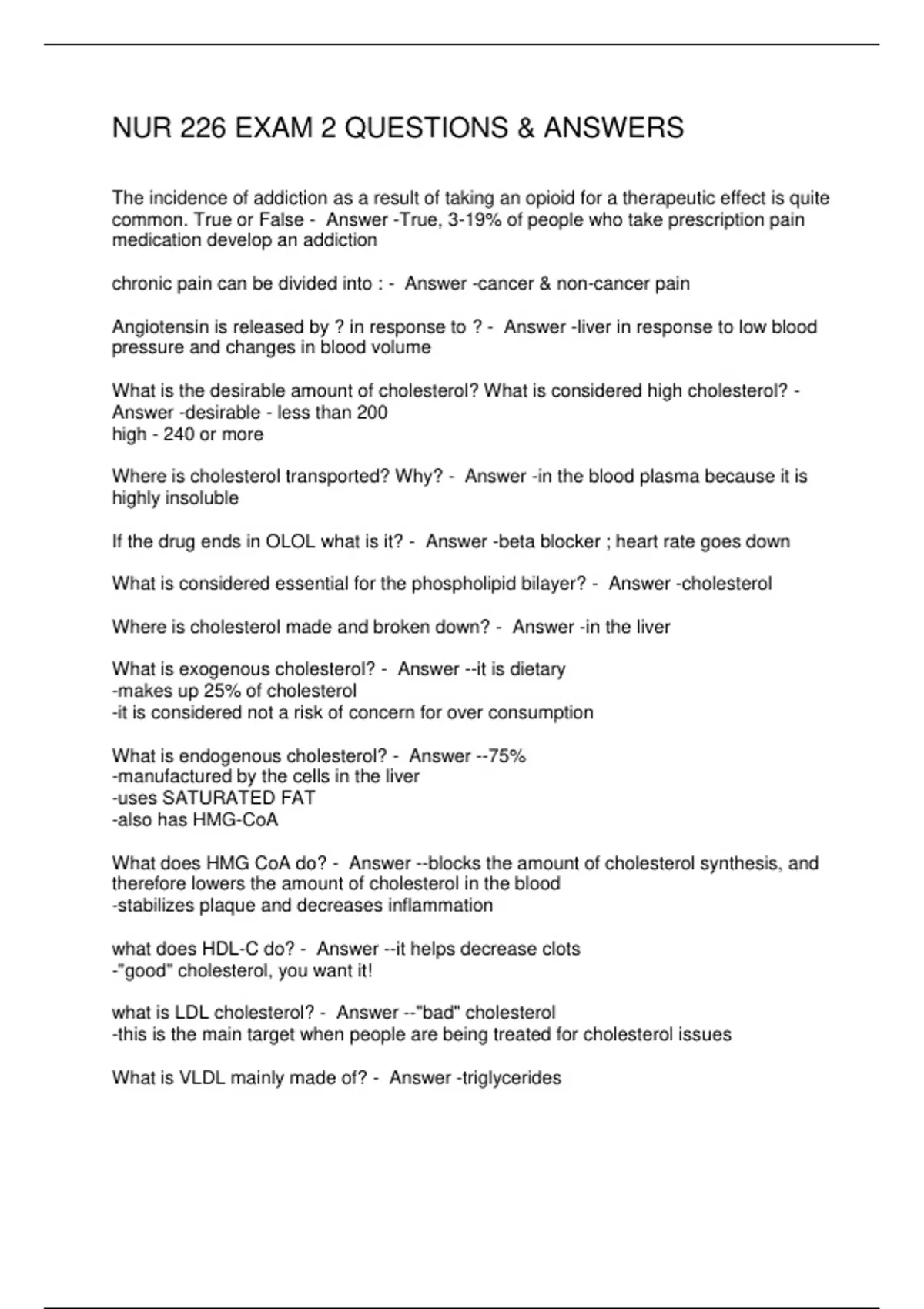 NUR 226 EXAM 2 QUESTIONS & ANSWERS