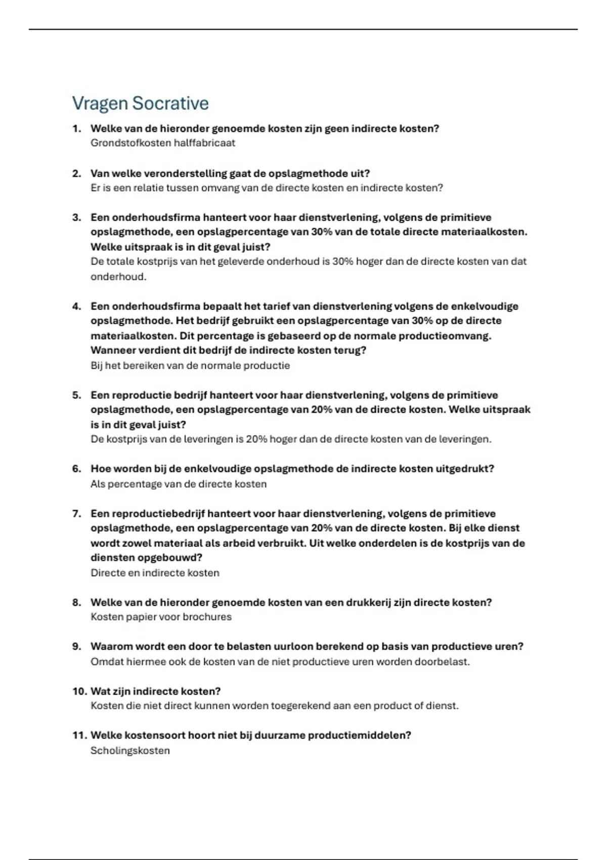 1. Welke van de hieronder genoemde kosten zijn geen indirecte kosten?