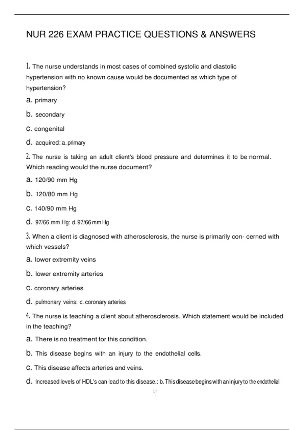 NUR 226 EXAM PRACTICE QUESTIONS & ANSWERS