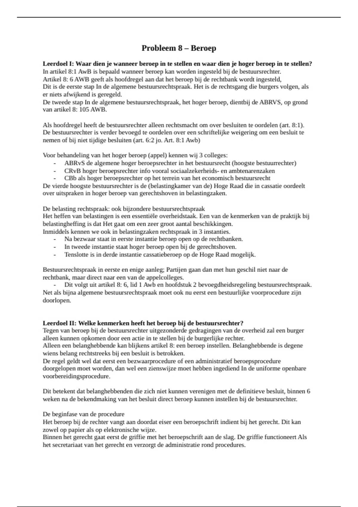 Leerdoel II: Welke kenmerken heeft het beroep bij de bestuursrechter?