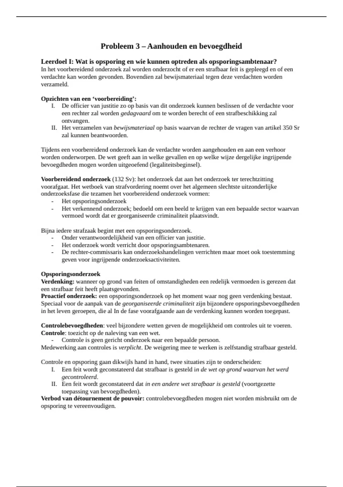 - Bevoegdheden ten aanzien van personen: aanhouding, voorlopige hechtenis, etc;
