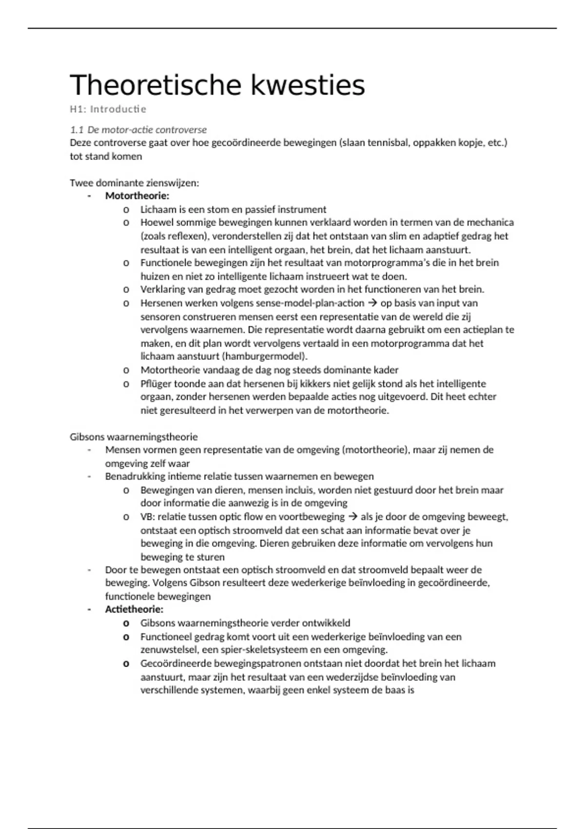Uitgebreide samenvatting van het boek en colleges theoretische kwesties bewegingswetenschappen