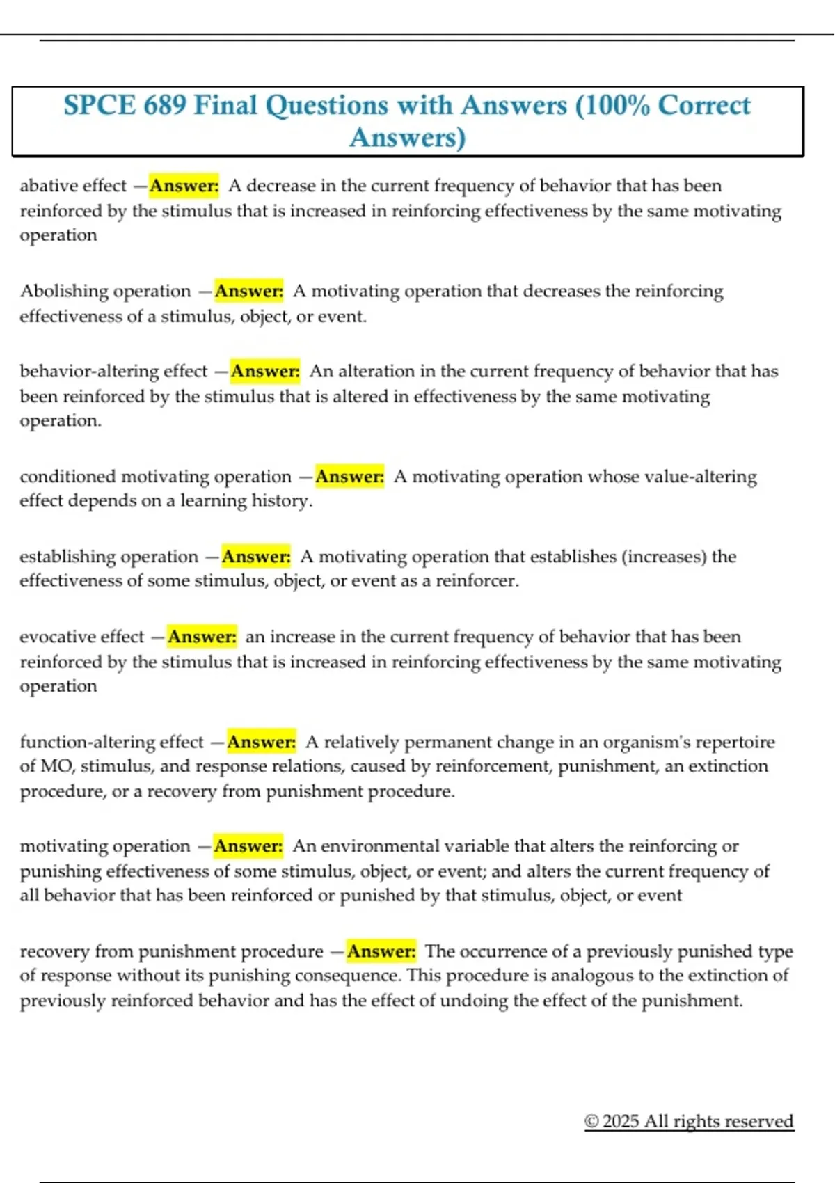 SPCE 689 Final Questions with Answers (100% Correct Answers)