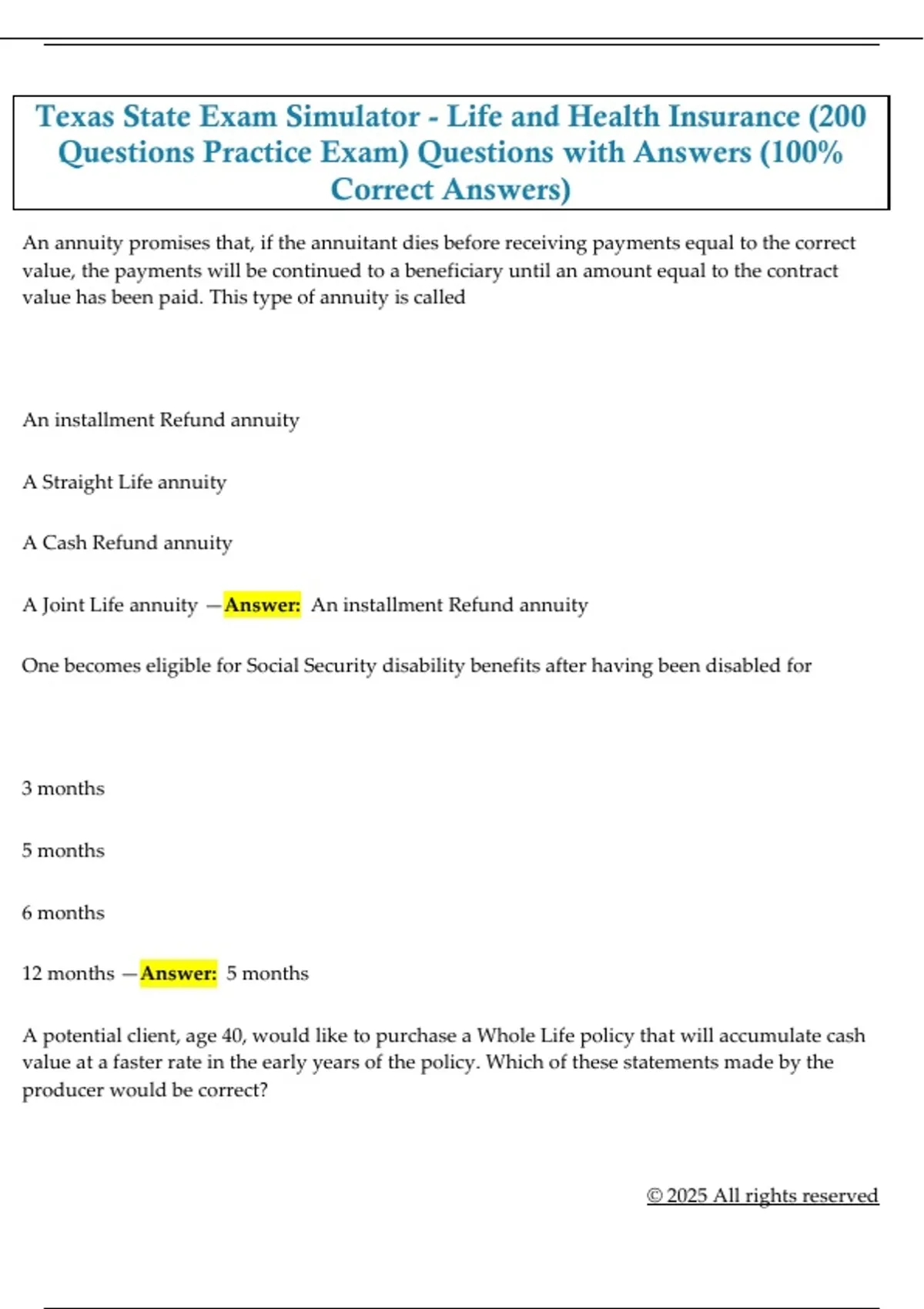 20-Pay Life and Straight Life accumulate cash value at the same rate —Answer: 20-Pay Life
