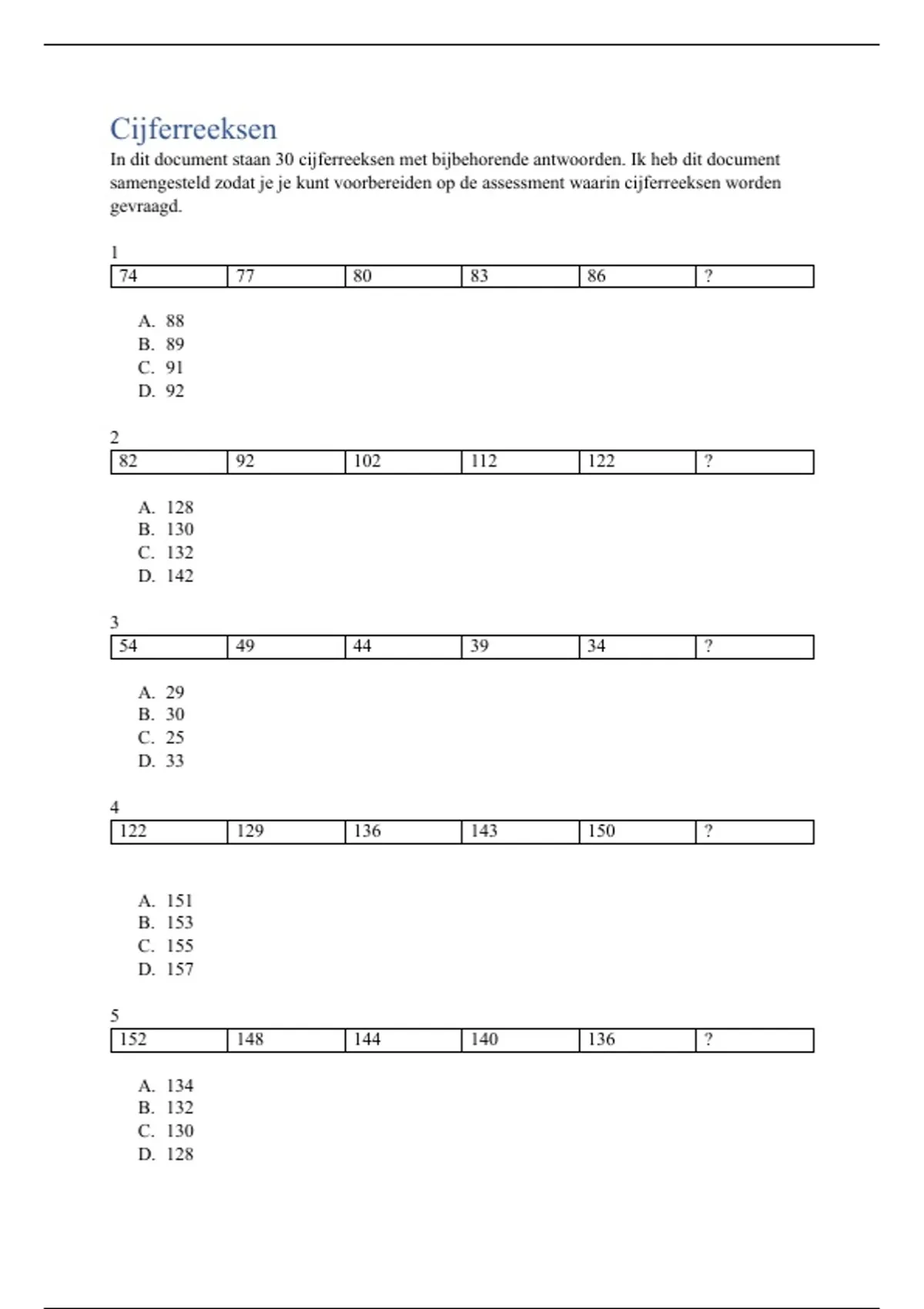 In dit document staan 30 cijferreeksen met bijbehorende antwoorden. Ik heb dit document
