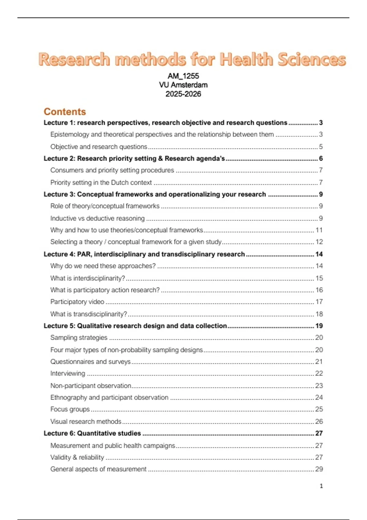 SUMMARY Research Methods in Health Sciences (AM_1255); Vrije Universiteit Amsterdam (VU)