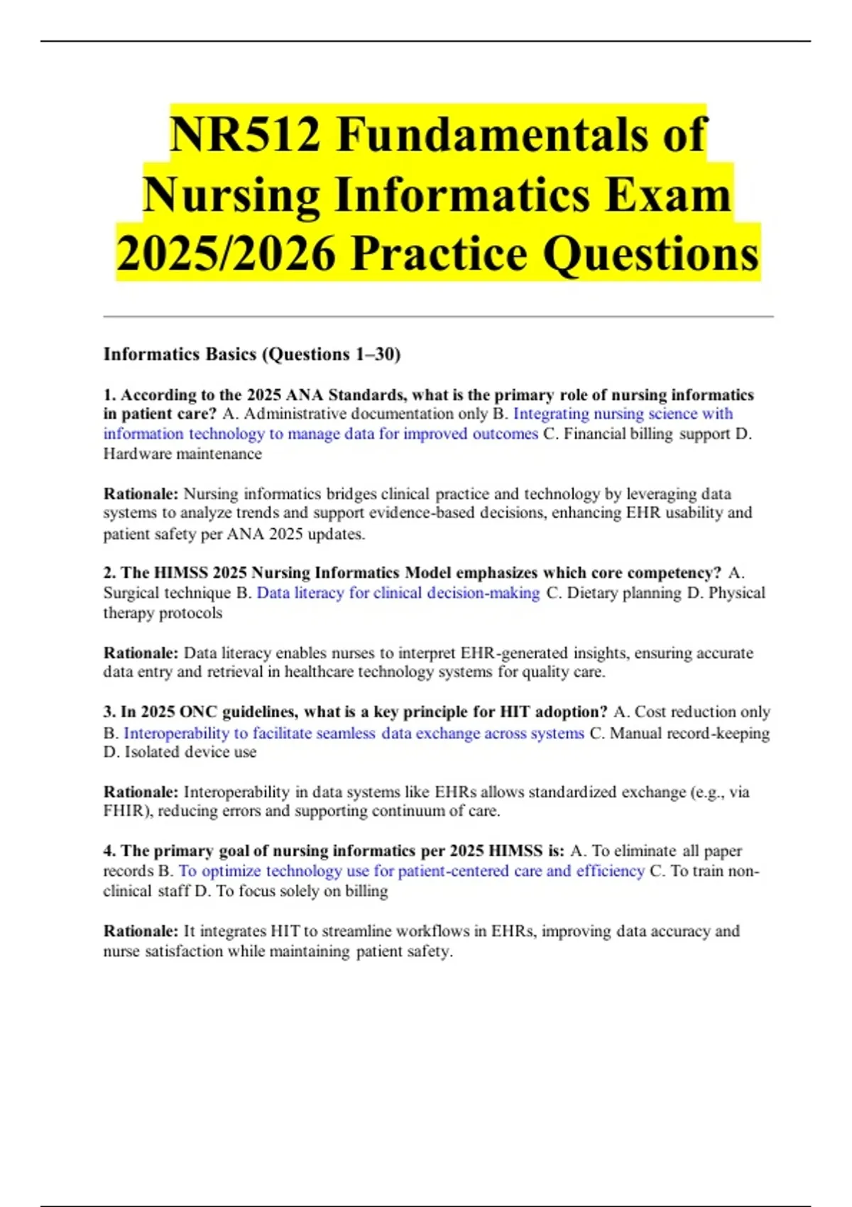 4. The primary goal of nursing informatics per 2025 HIMSS is: A. To eliminate all paper