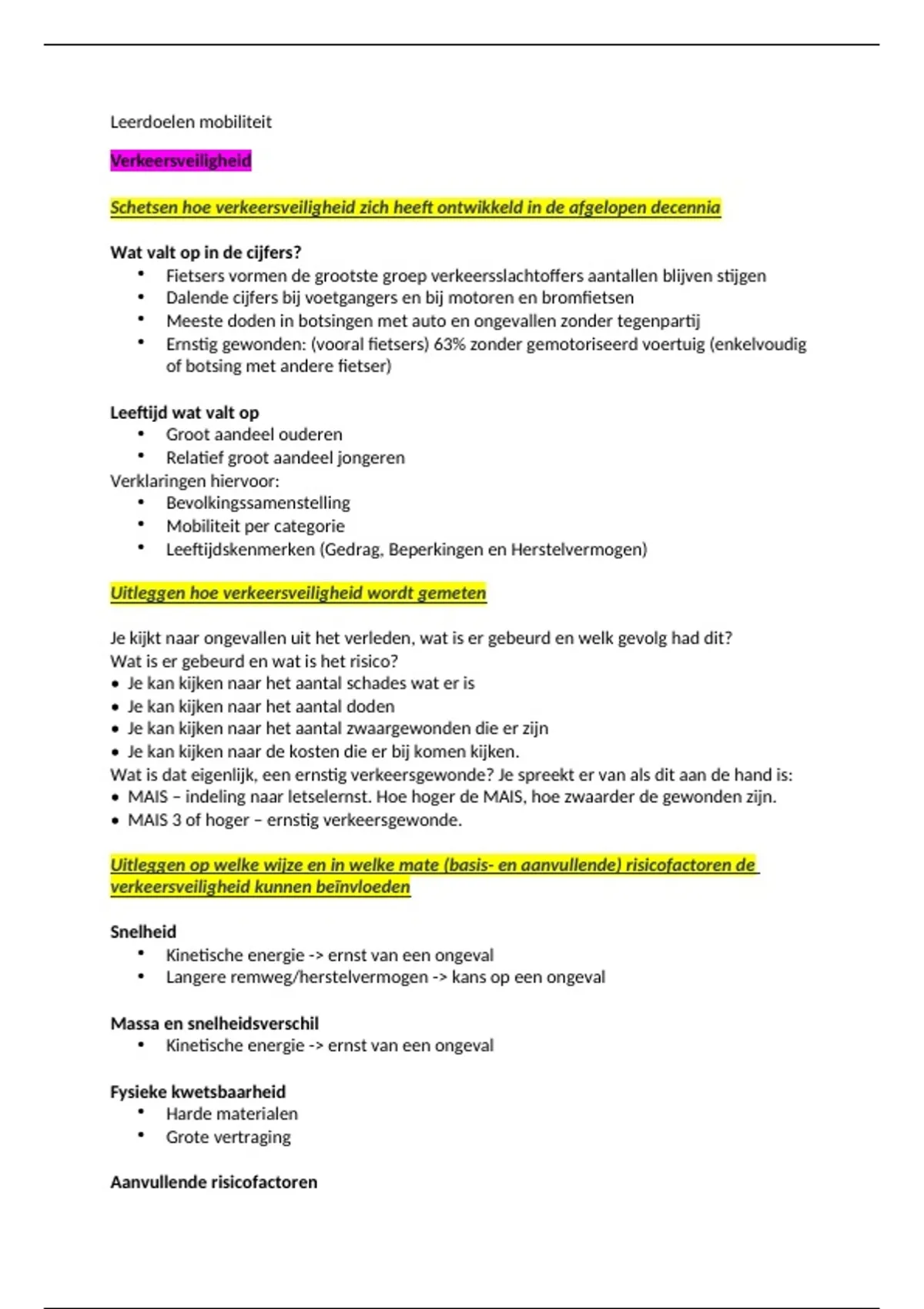Uitleggen hoe de begrippen massa, snelheid en fysieke kwetsbaarheid zich tot elkaar