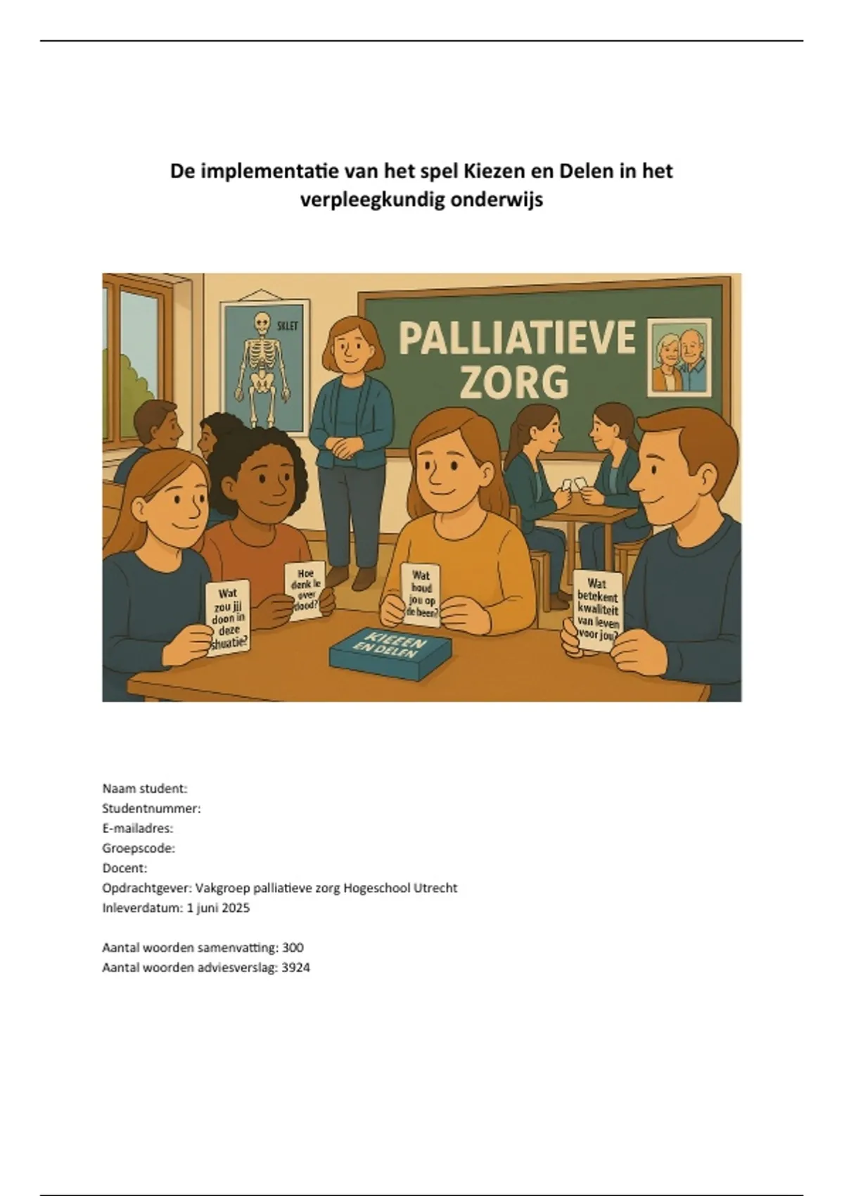 Opdrachtgever: Vakgroep palliatieve zorg Hogeschool Utrecht