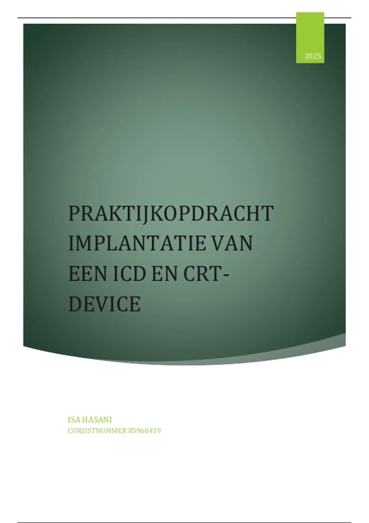 , Opdracht A: Implantatie van een ICD en CRT-device