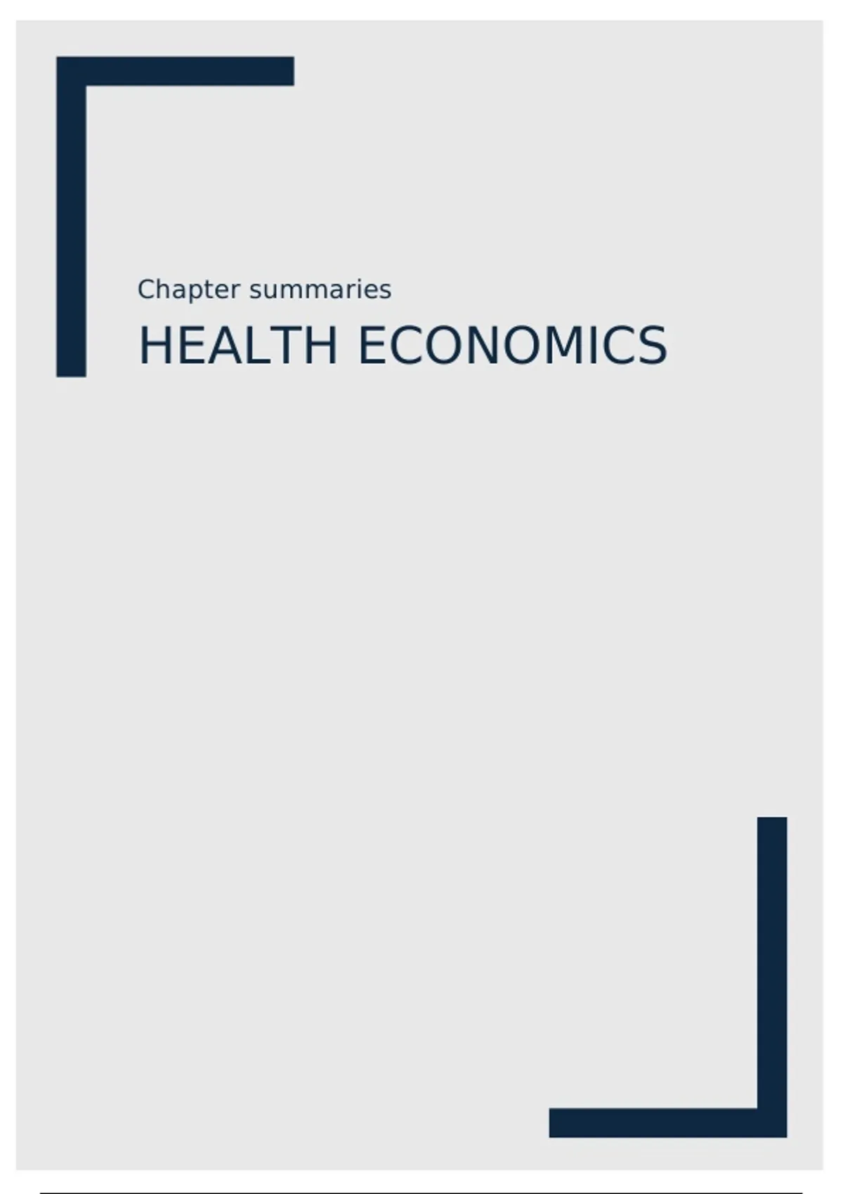 Een samenvatting voor het vak Health Economics aan de RUG. Combinatie van zowel de literatuur uit het boek als informatie van de colleges
