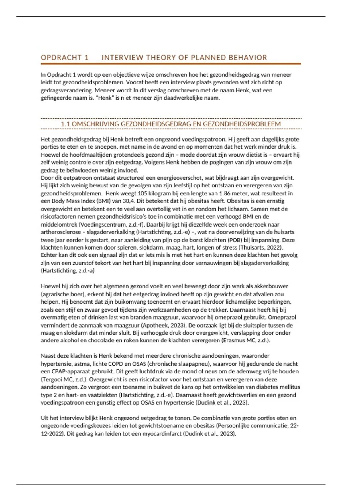 OPDRACHT 1 INTERVIEW THEORY OF PLANNED BEHAVIOR