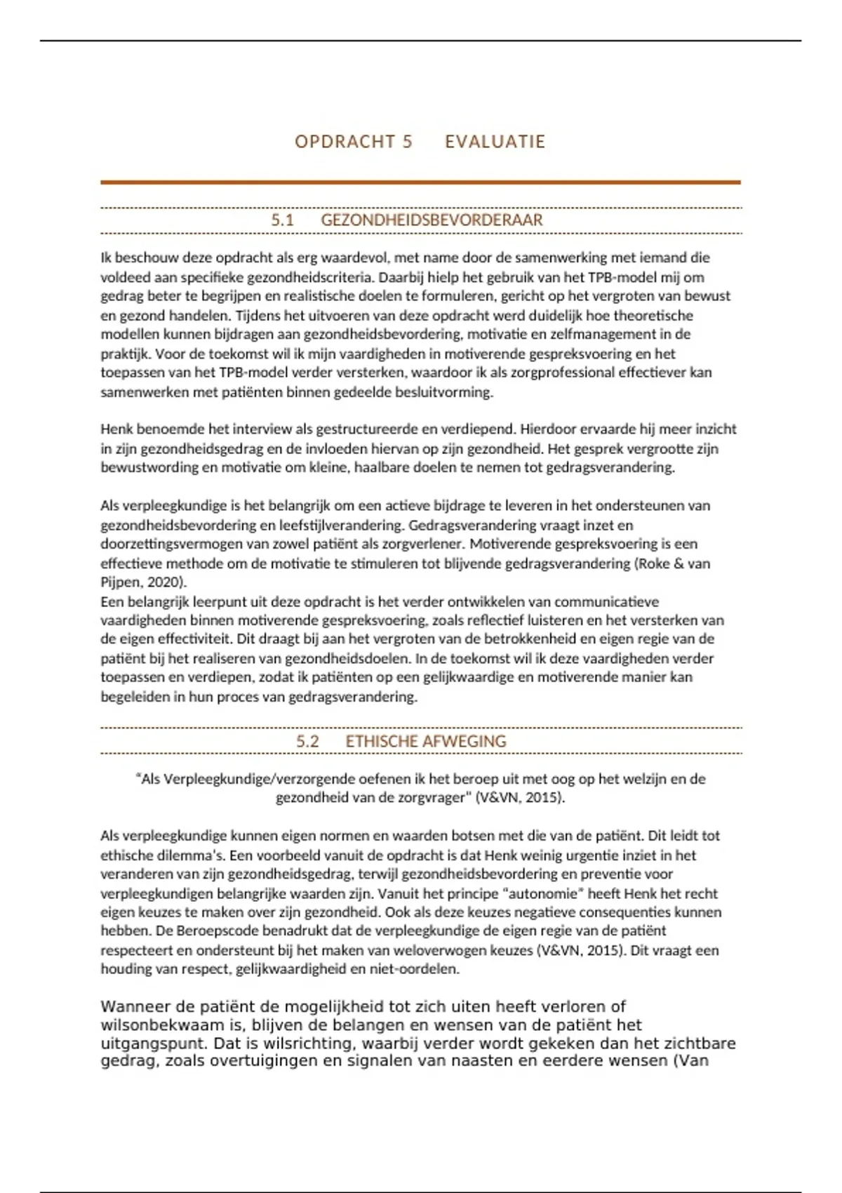 Opdracht 5 uitwerking Gezondheidsbevordering IT3 - cijfer 9,8