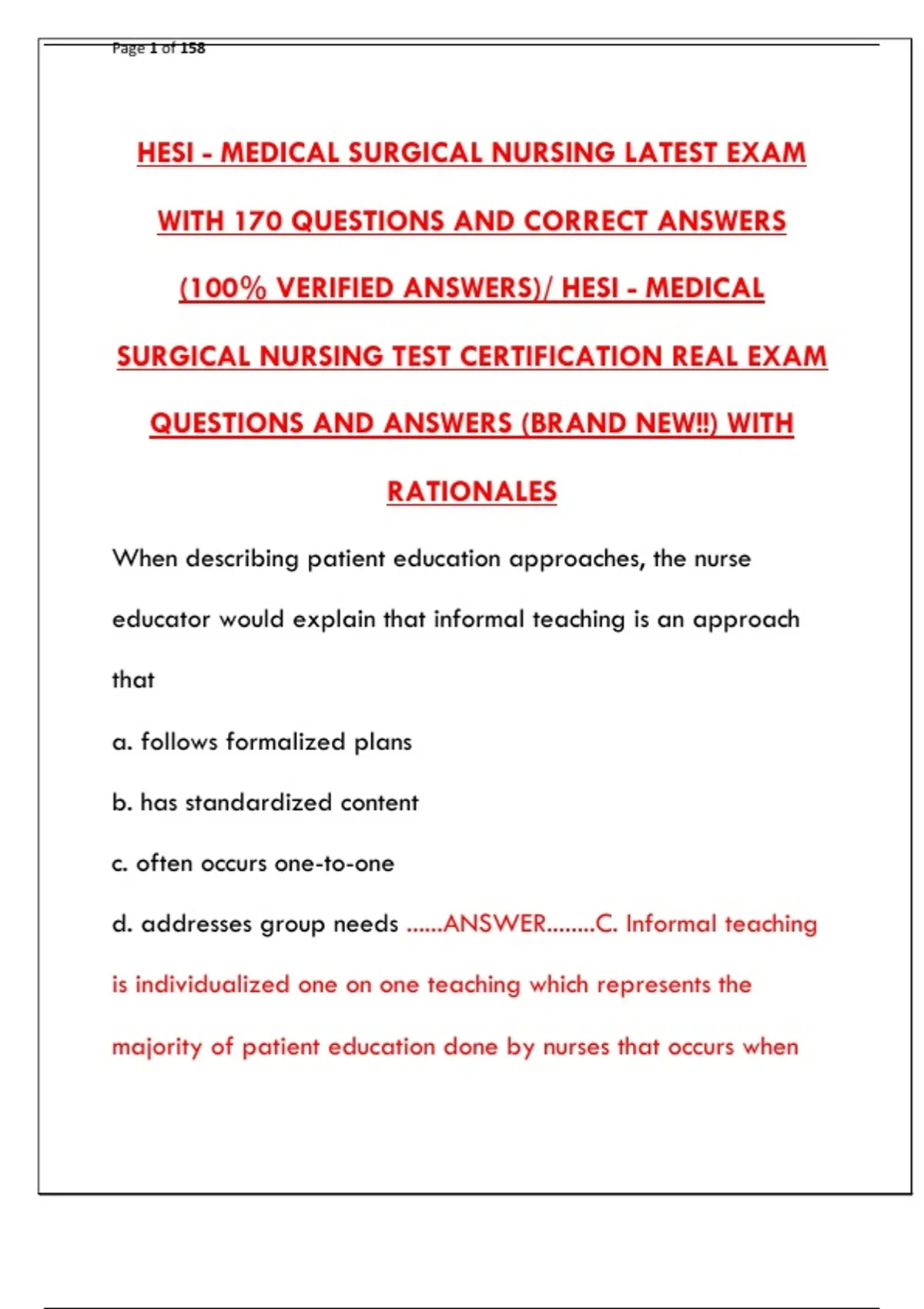 (100% VERIFIED ANSWERS)/ HESI - MEDICAL