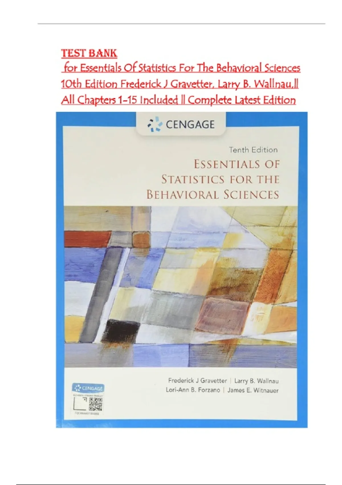TEST BANK FOR Essentials Of Statistics For The Behavioral Sciences 10th Edition Frederick J Gravetter, Larry B. Wallnau, Lori Ann B. Forzano, James E. Witnauer 2026 A+