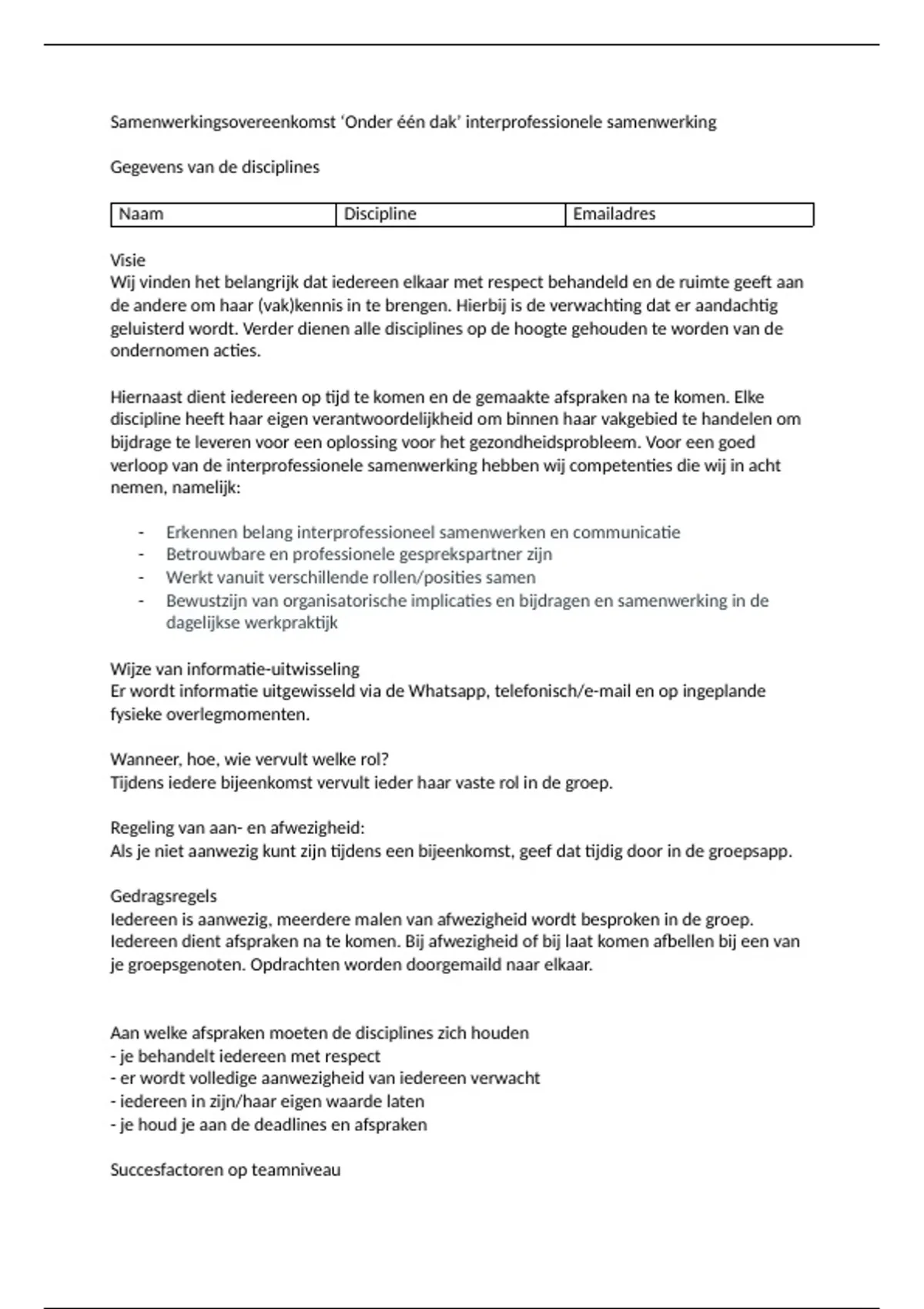Samenwerkingsovereenkomst ‘Onder één dak’ interprofessionele samenwerking