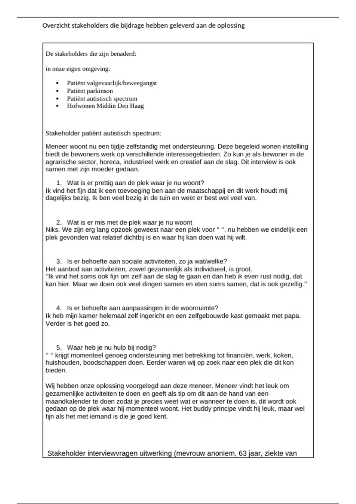 Stakeholder interviewvragen uitwerking (mevrouw anoniem, 63 jaar, ziekte van