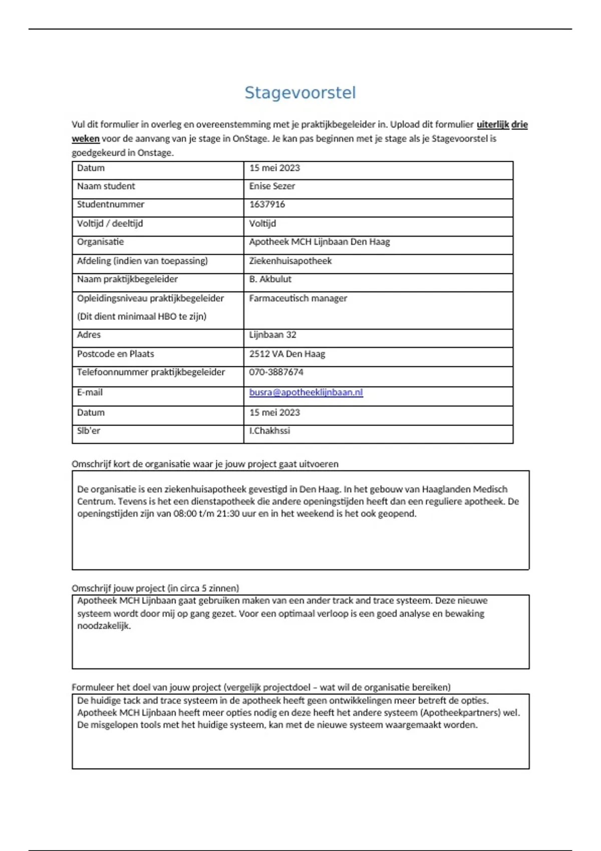 Vul dit formulier in overleg en overeenstemming met je praktijkbegeleider in. Upload dit formulier uiterlijk drie
