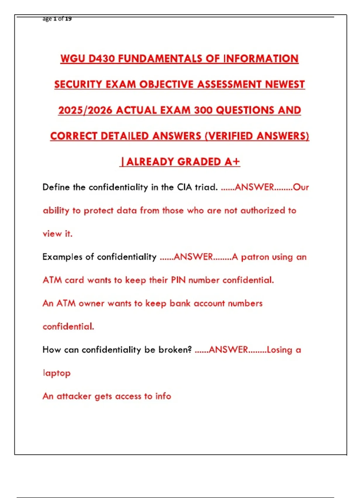 Prepare for the newest WGU D430 Fundamentals of Information Security Objective Assessment in 2025. Get key concepts on security principles, risk management, and cryptography to help you pass your exam.