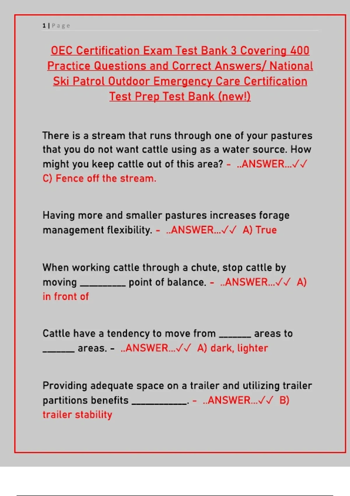 Pass your 2025 National Ski Patrol Outdoor Emergency Care (OEC) certification exam. Get 400 practice questions with correct answers for cattle handling, phlebotomy, and emergency care test prep.