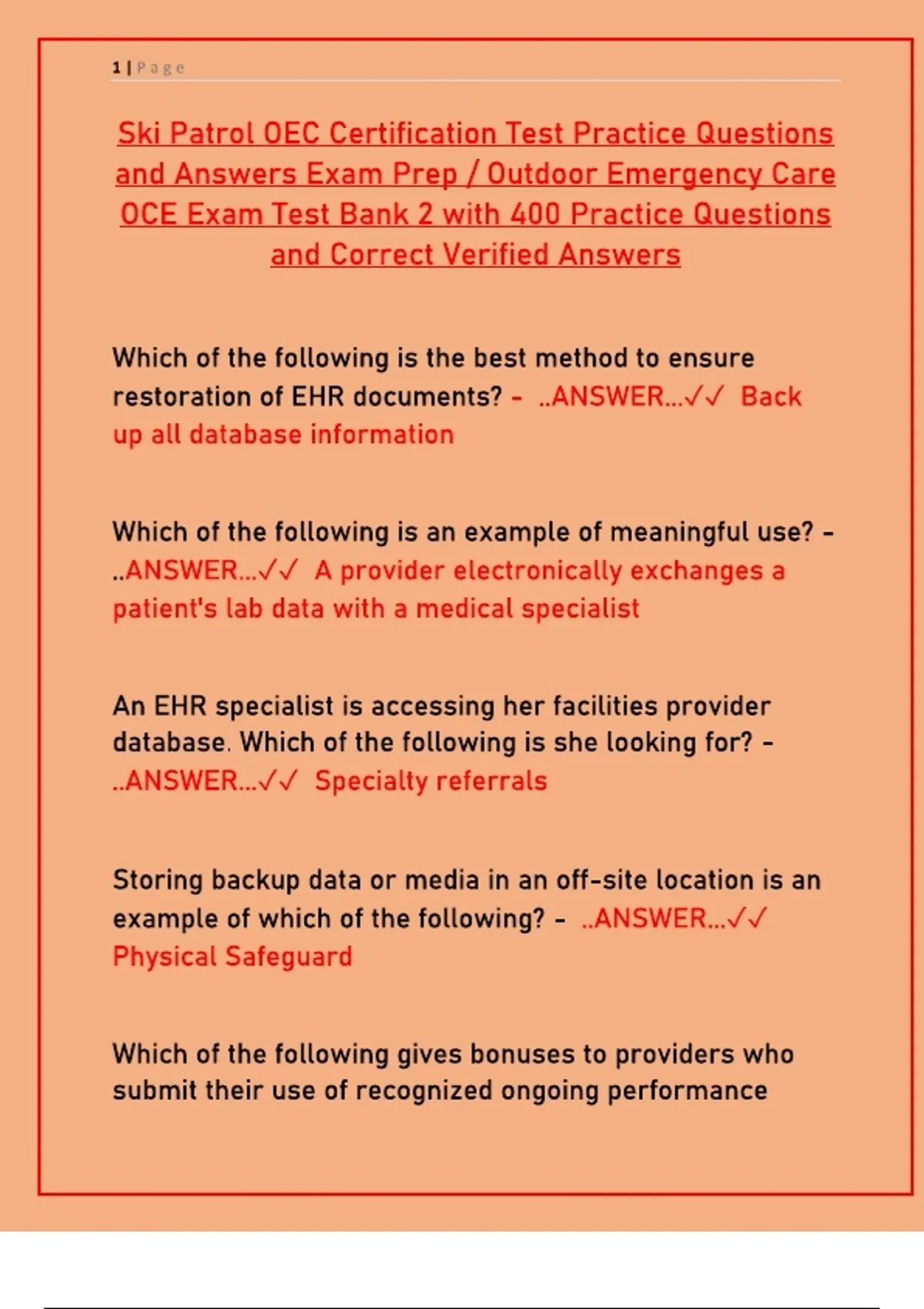 Ski Patrol OEC Certification Exam 2025: Practice Test with Questions & Answers