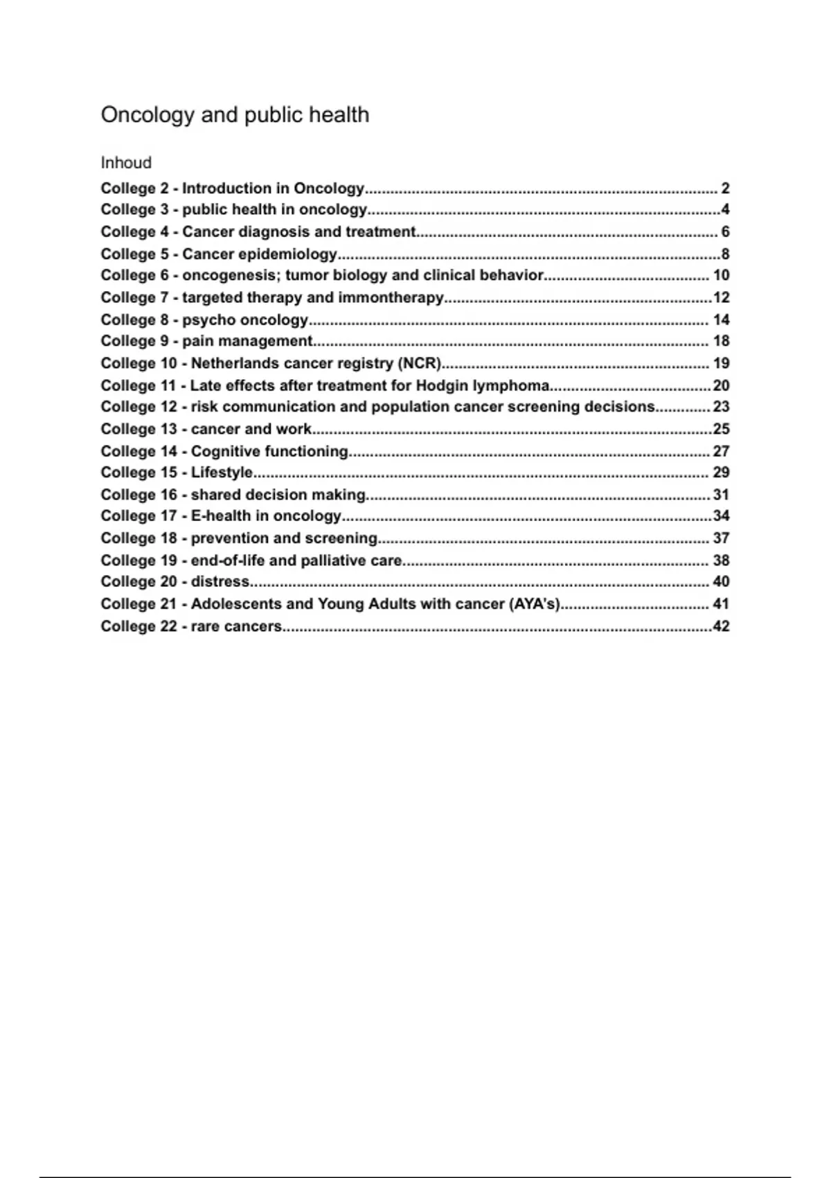 College 2 - Introduction in Oncology................................................................................... 2