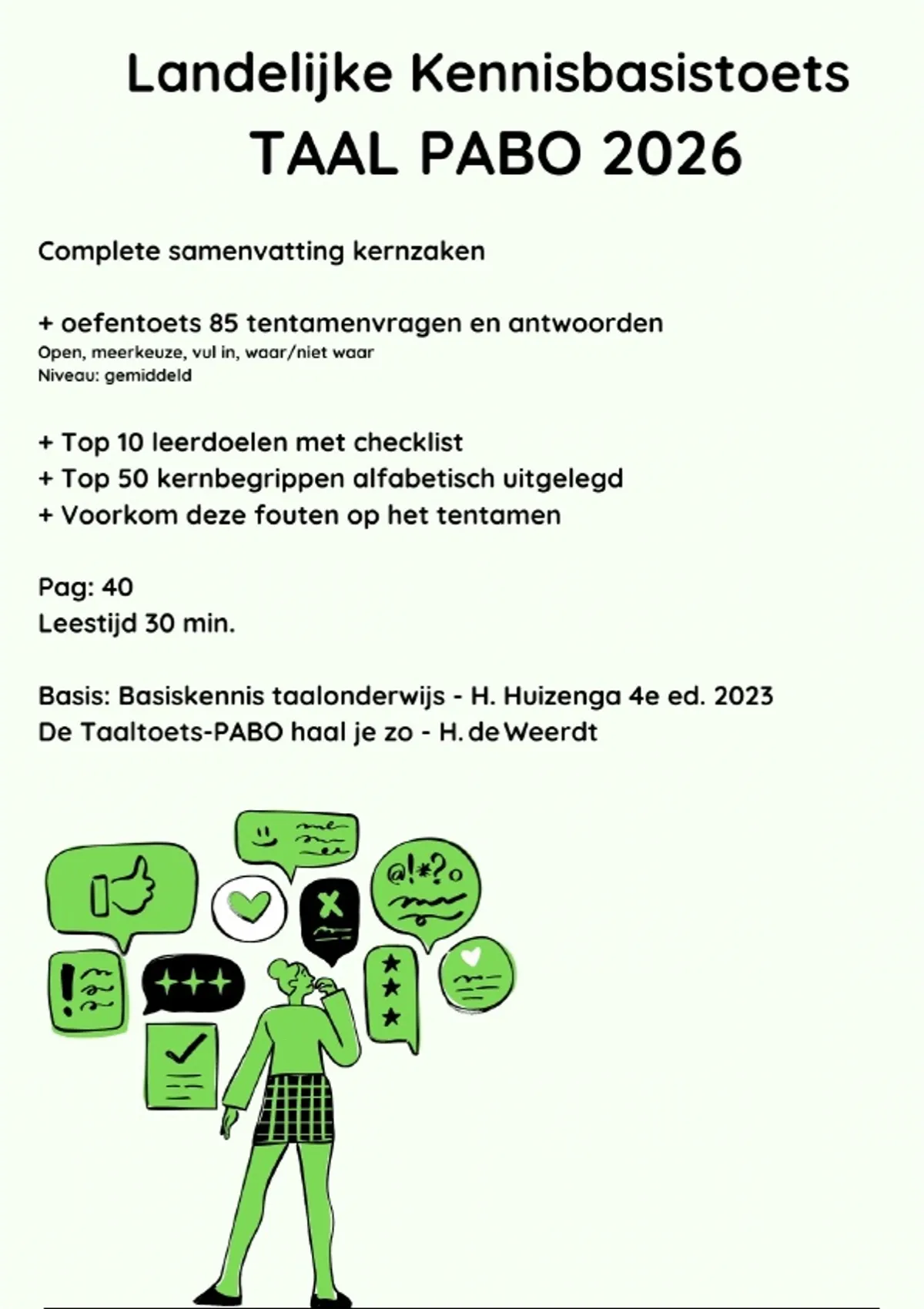 Complete PABO samenvatting Kennisbasis TAAL 2026 + oefentoets + leerdoelen + kernbegrippen