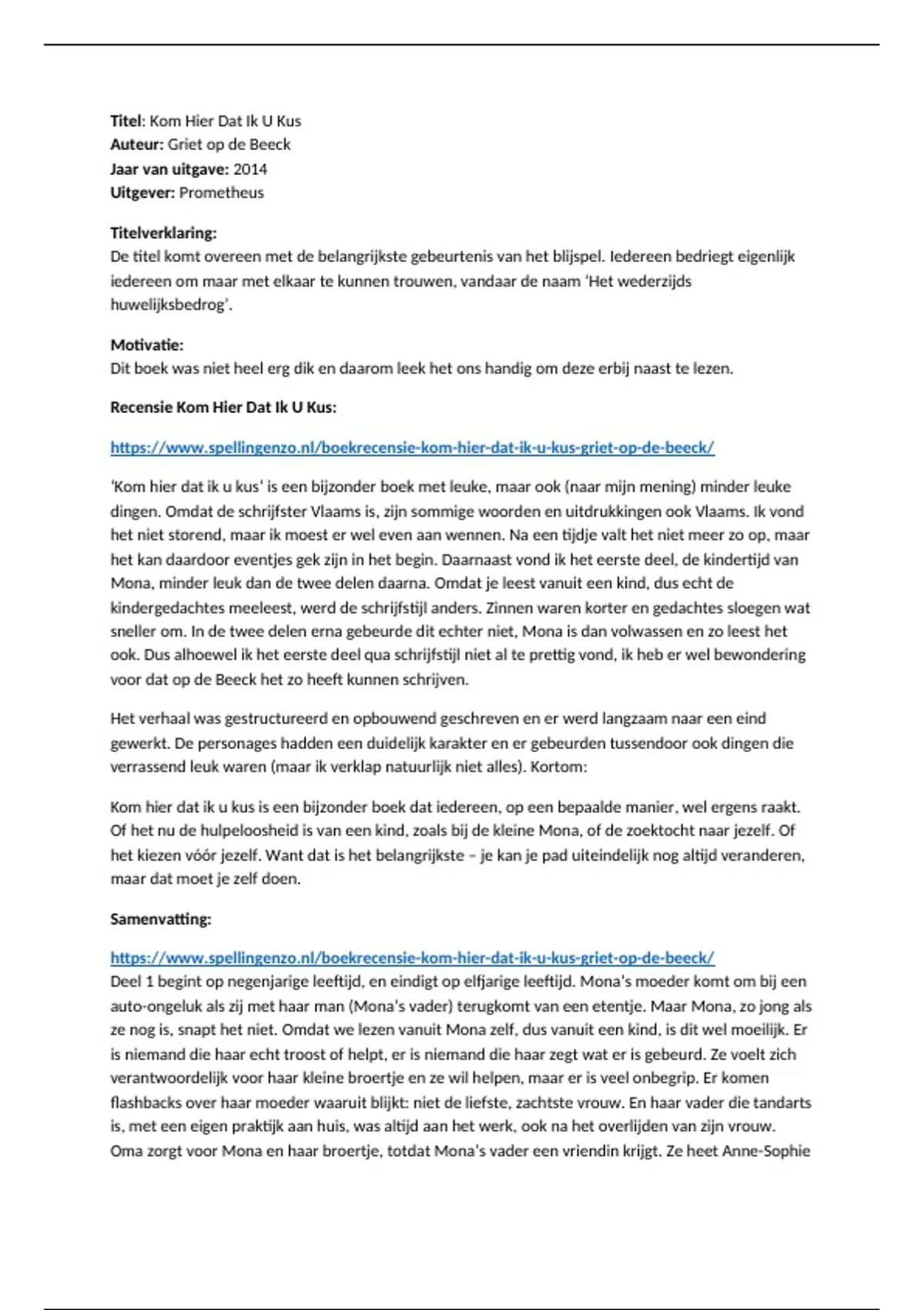 boekverslag kom hier dat ik u kus van Griet op de Beeck