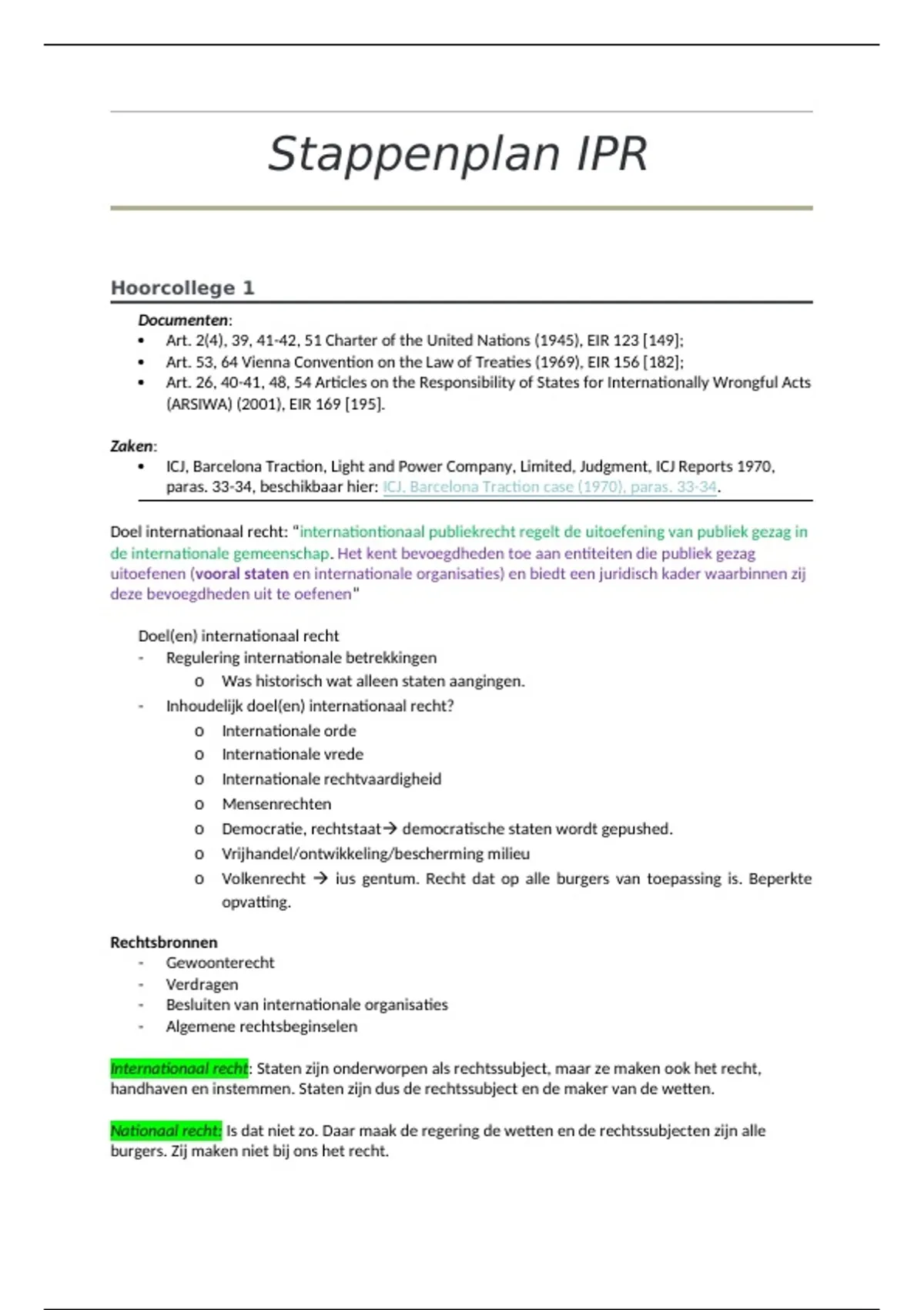 Doel internationaal recht: “internationtionaal publiekrecht regelt de uitoefening van publiek gezag in