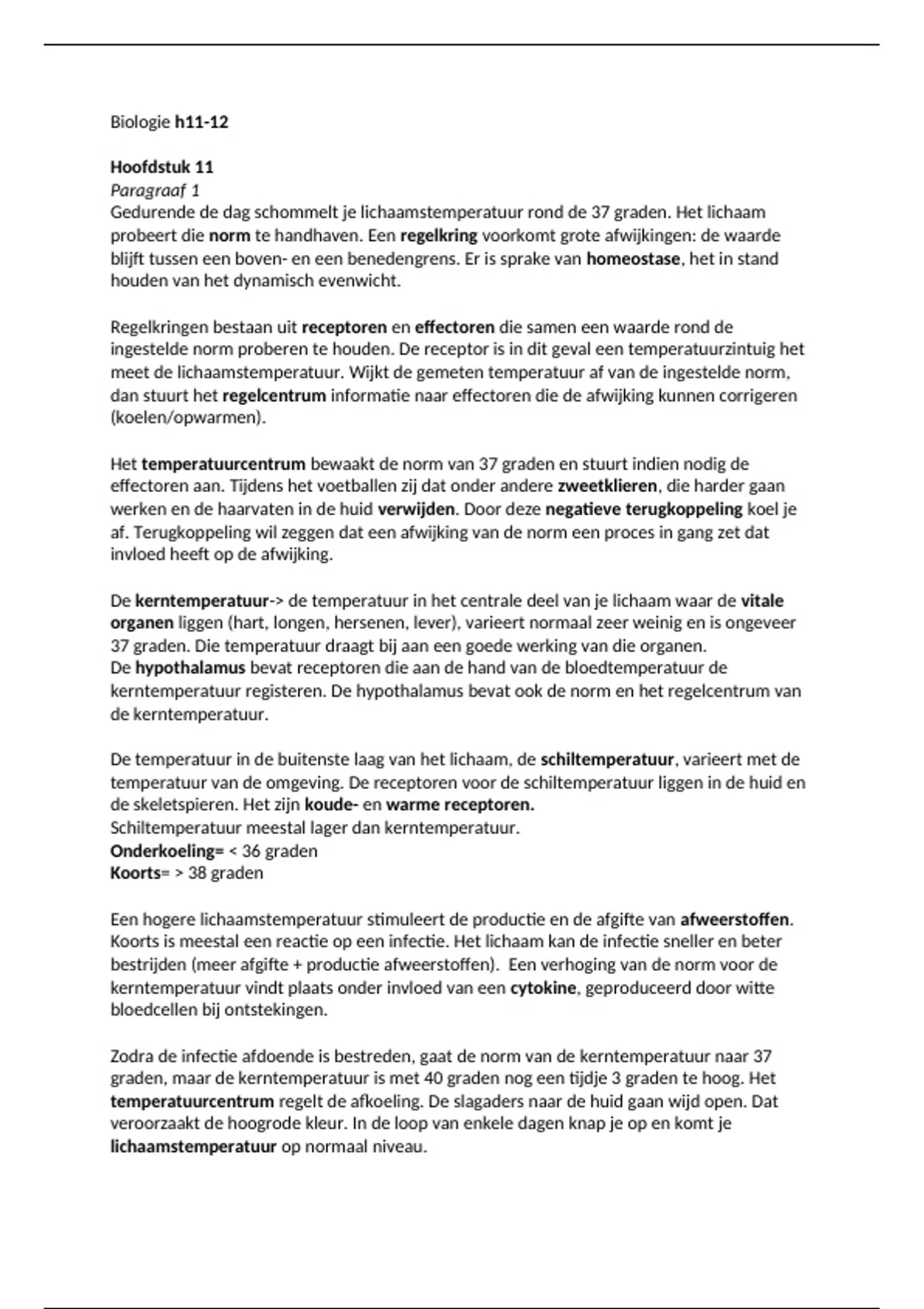 De kerntemperatuur-> de temperatuur in het centrale deel van je lichaam waar de vitale