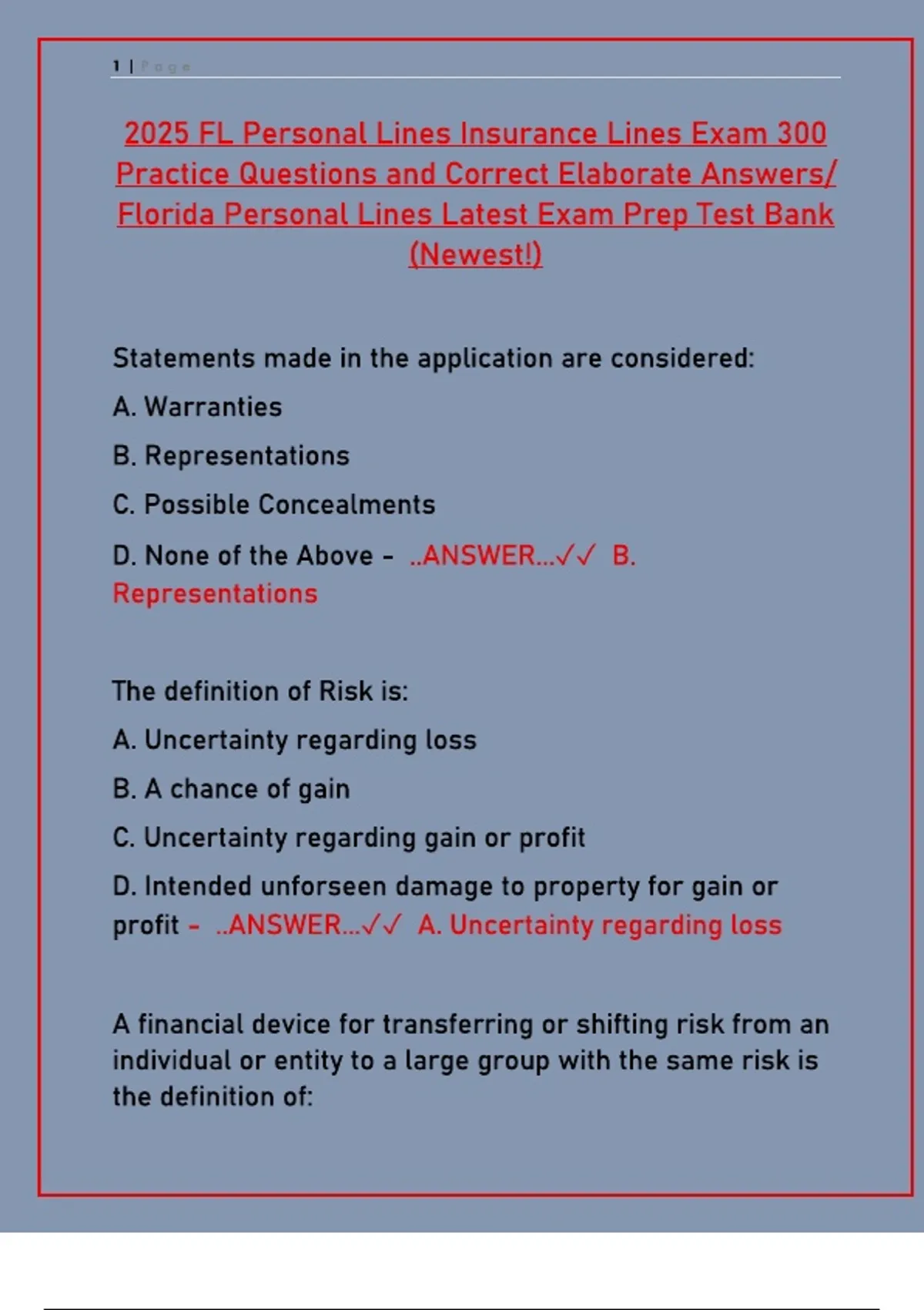 Ace your Personal Lines Insurance exam with 300 essential practice questions. This comprehensive guide features detailed, elaborate answers to help you master key concepts and pass your test with confidence.