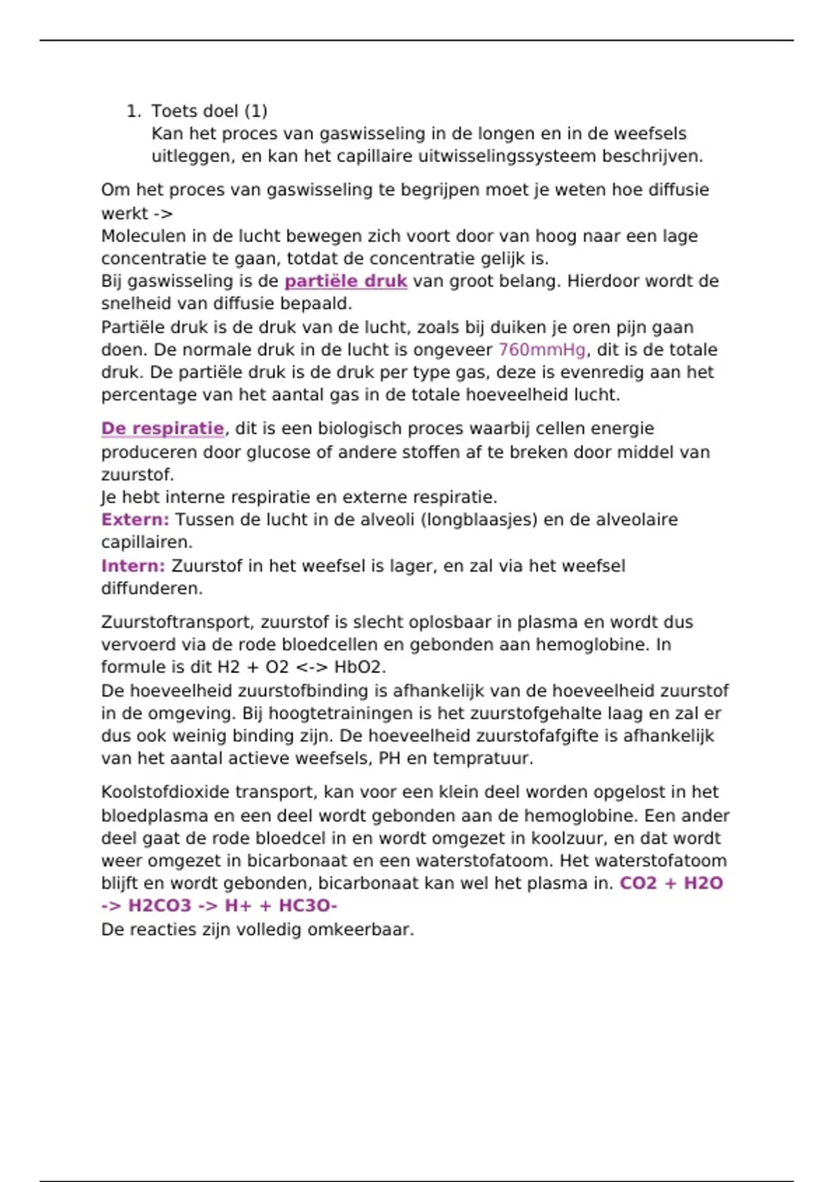 1. Respiratoire acidose, door de longen is het bloed te zuur, aangezien