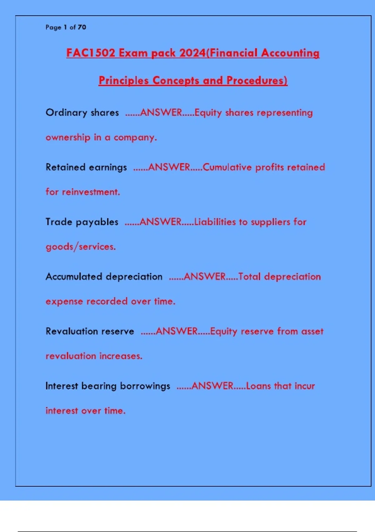 Prepare for your 2025 UNISA FAC1502 Financial Accounting Exam. This comprehensive exam pack covers core principles, concepts, and procedures. Get past papers, practice questions, and study guides to master the syllabus and pass your test.