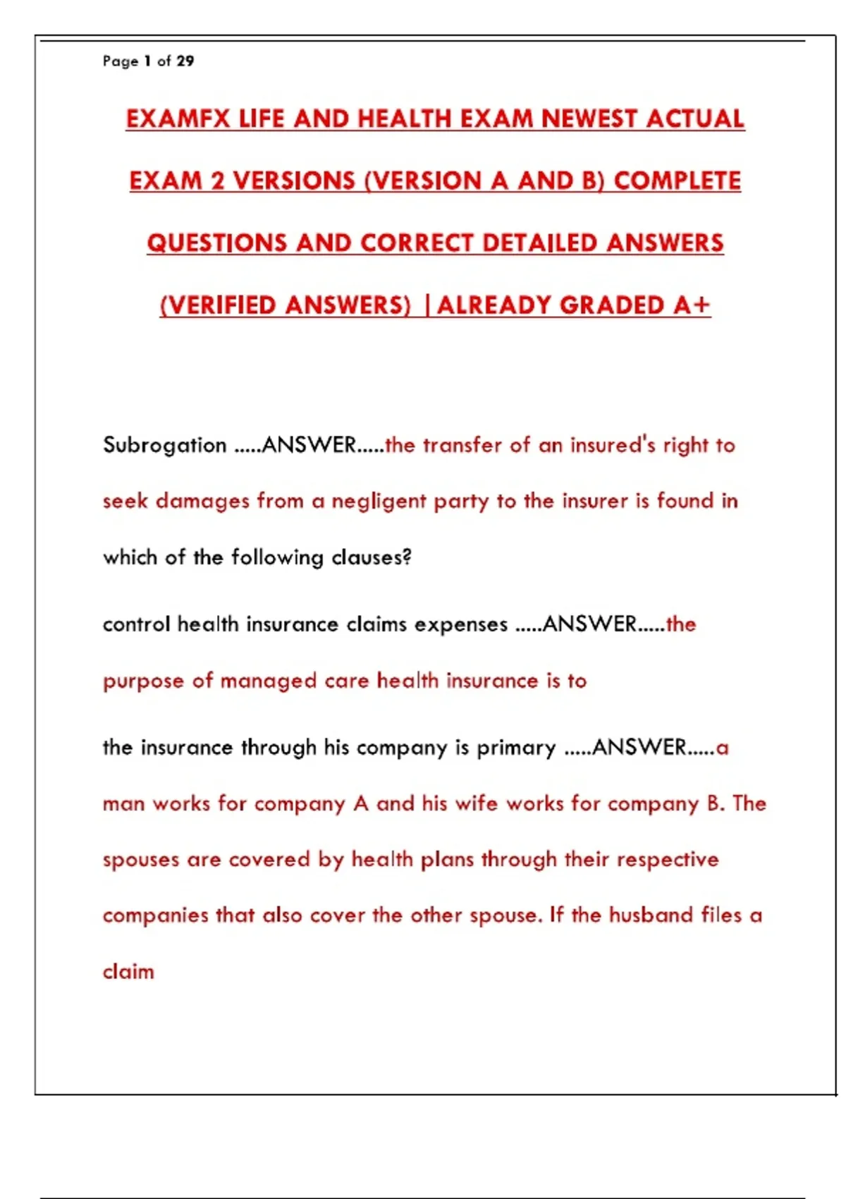 Pass your 2025 ExamFX Life and Health insurance licensing exam on the first try. Get the 2 newest versions of the actual practice exam with verified answers. Simulate the real test experience and master state-specific laws, policies, and provisions.