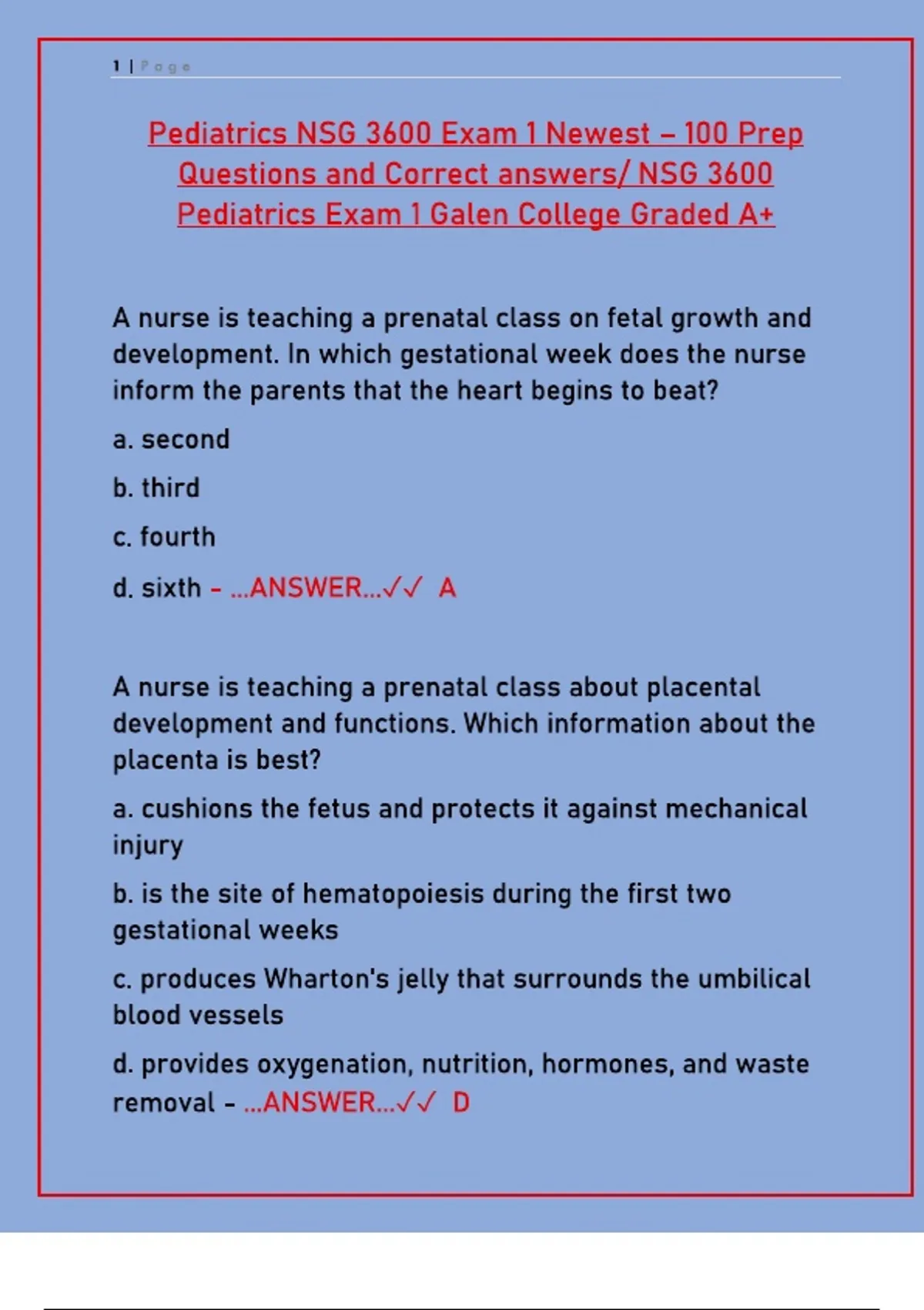NSG 3600 Pediatrics Exam 1 Practice 2025: 100 Q&A | Galen College Nursing